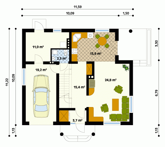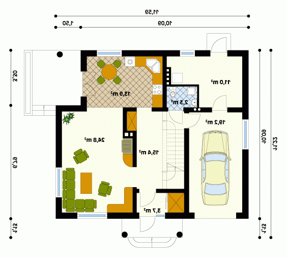 - Min. wymiary działki 19.59x20.22 m
