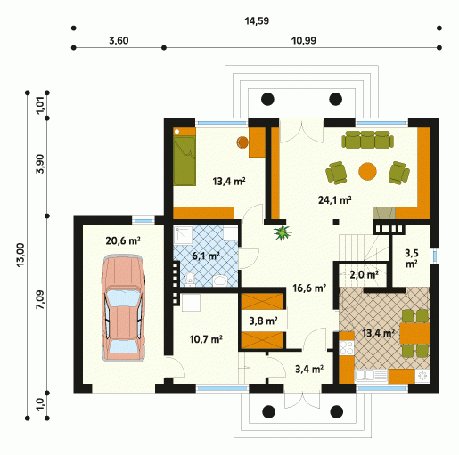 - Powierzchnia zabudowy 146.25 m²