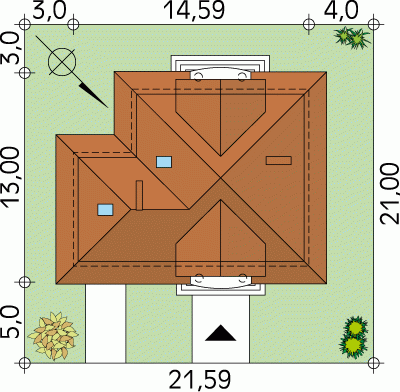 - Min. wymiary działki 21.59x21.00 m