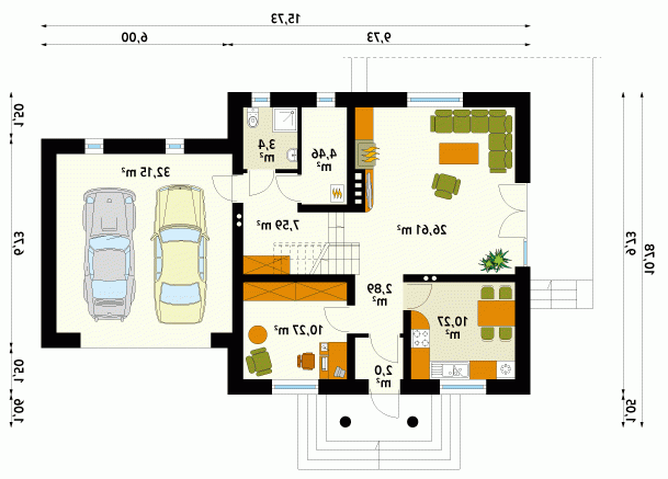 - Min. wymiary działki 20.73x19.79 m