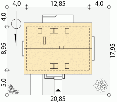- Min. wymiary działki 20.85x17.95 m