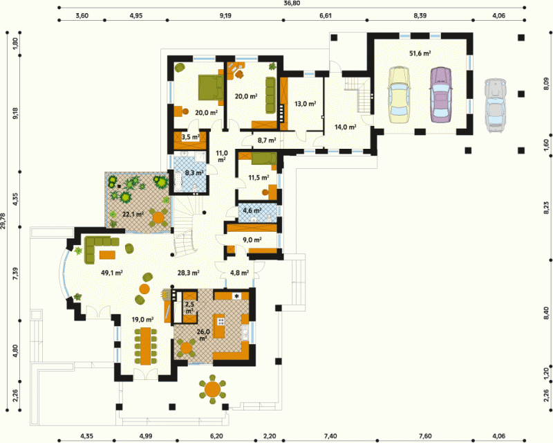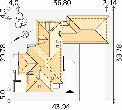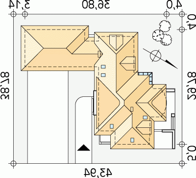 - Min. wymiary działki 43.94x38.78 m