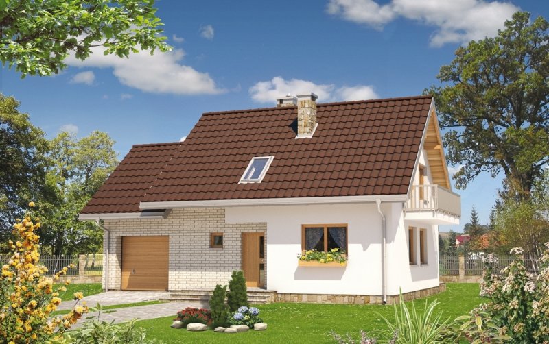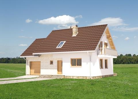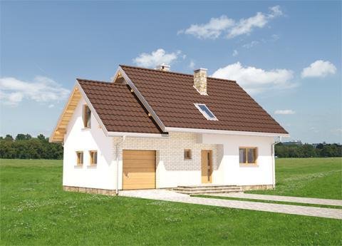 Inwestorzy, mający w planach budowę domu o powierzchni ok. 100m2, są w uprzywilejowanej sytuacji. Projekty domów z użytkowym poddaszem o tej wielkości prezentują liczne i zróżnicowane rozwiązania. Projekt domu Czaruś ma, wśród nich, najprostszą sylwetkę z dobudowanym garażem i z dodatkową przestrzenią mieszkalną na jego poddaszu. Przy dwuspadowym, nieskomplikowanym dachu bez lukarn i przy braku balkonów, taki układ gwarantuje ekonomiczną budowę i energooszczędne użytkowanie mieszkania. Układ funkcjonalny Czarusia nie odbiega od innych propozycji - składa się z jednoprzestrzennego pokoju dziennego z kuchnią, z łazienką i kotłownią na parterze oraz z czteropokojowej strefy prywatnej na poddaszu. Na uwagę zasługuje za to propozycja usytuowania kominka, który zręcznie oddziela otwarty salon od holu i przejścia do kotłowni. Znajdując się na środku rzutu kominek daje przy tym możliwość prostej dystrybucji ciepłego powietrza i wykorzystania go na poddaszu. Osoby, które wybiorą projekt domu Czaruś uczynią to zapewne także z uwagi na rozmiary kotłowni. Dają one swobodę w wyborze sposobu ogrzewania domu lub/i umożliwiają urządzenie pralni.