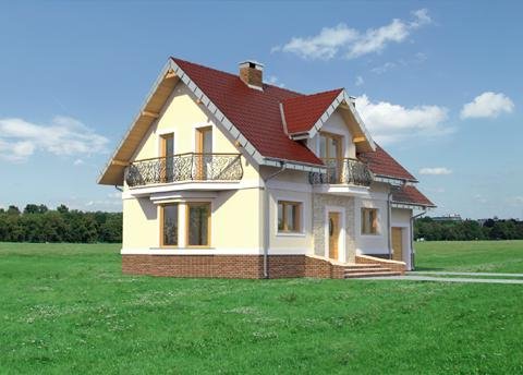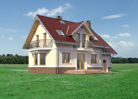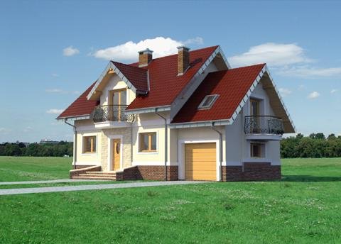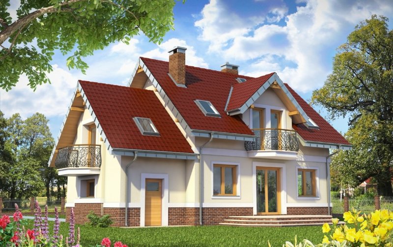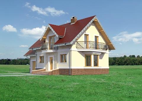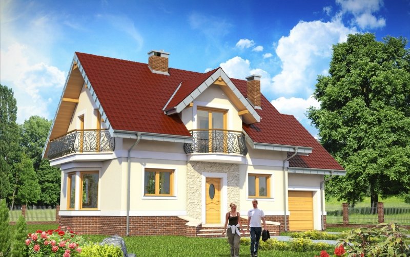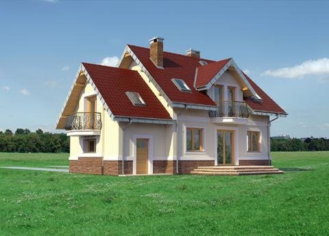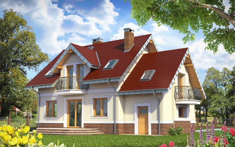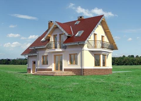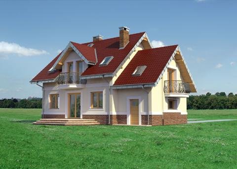 Dobudowany do części mieszkalnej garaż może być wykorzystywany jako podstawa dużego tarasu lub dodatkowej powierzchni poddasza użytkowego. Projekt domu Dario As oferuje tę drugą możliwość, a wśród podobnych koncepcji o powierzchni użytkowej ok. 100m2 (Smyk Alfa, Majka Rex) wyróżniają go tradycyjne detale. Tak jak w nieco mniejszym, a poza tym identycznym, Dario są nimi:ryzalit jadalni w ścianie bocznej, symetrycznie rozmieszczone lukarny w dwuspadowym dachu nad wejściem i tarasem ogrodowym oraz wieloboczne, dekoracyjne balkony. Stosunkowo przestronna strefa dzienna nie pozostawia miejsca na dodatkowy pokój na parterze. Jego miejsce zajmuje spora kotłownia dostępna z garażu. Otwarty pokój dzienny z kuchnią zajmuje większość parteru, rozplanowanego wokół centralnie położonego kominka i schodów. Program funkcjonalny dolnej kondygnacji uzupełnia jasna łazienka w strefie wejścia. Projekt domu Dario As oferuje na poddaszu trzy bardzo wygodne sypialnie. Dwie z nich mają garderobę, a ogólnie dostępna łazienka jest duża, ustawna i otwiera się na balkon.