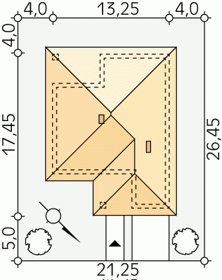 - Min. wymiary działki 21.25x26.45 m