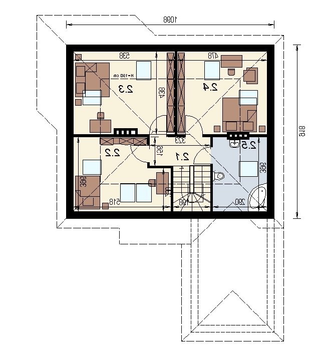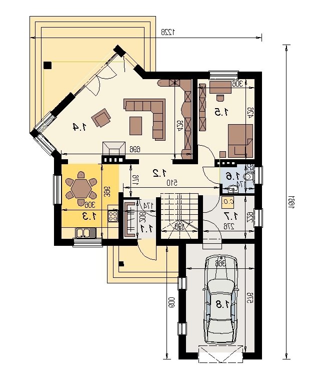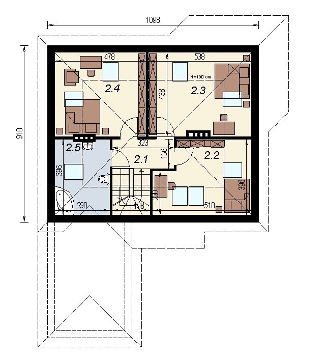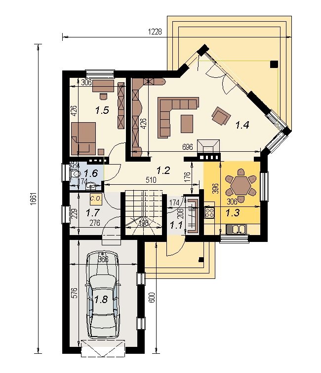 Na małej przestrzeni uwzględniono program funkcjonalny dla 5 osobowej rodziny. dom posiada dobrze doświetlony pokój dzienny z wyjściem na zadaszony taras. Ścięty narożnik salonu jest elementem, który przyczynia się do lepszego usytuowania budynku na działce. na poddaszu zlokalizowano 3 duże, ustawne sypialnie. dom posiada garaż na 1 samochód osobowy. projekt jest opracowany ekonomicznie i w trakcie budowy nie stwarza problemów wykonawczych. projekty podobne: dj 15, dj 4.