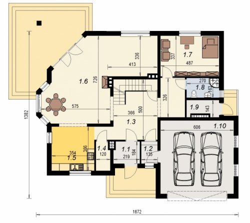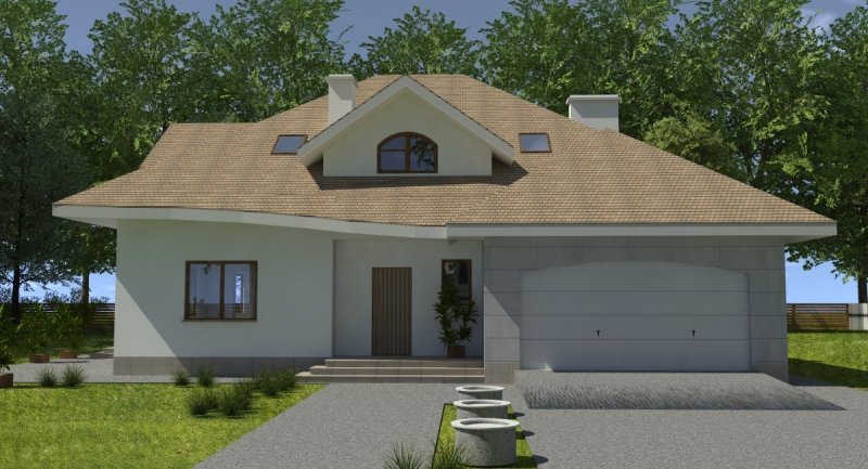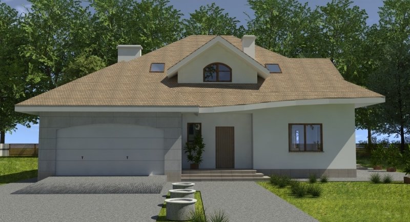 Dom tradycyjny z poddaszem użytkowym, podpiwniczony. Cechą charakterystyczną projektu są duże, obszerne pomieszczenia oraz zgrabna i funkcjonalna architektura. Na parterze została zaprojektowana część dzienna, na poddaszu znajduje się część nocna. Dom posiada wygodny garaż na 2 samochody osobowe. projekty podobne: dj 44,dj 179, dj 64.