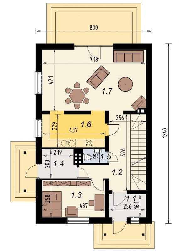 Zaprojektowany specjalnie na wąską działkę. Prosty w projektowaniu, tani w wykonaniu, ekonomiczny w utrzymaniu. Typowy reprezentant architektury tradycyjnej.