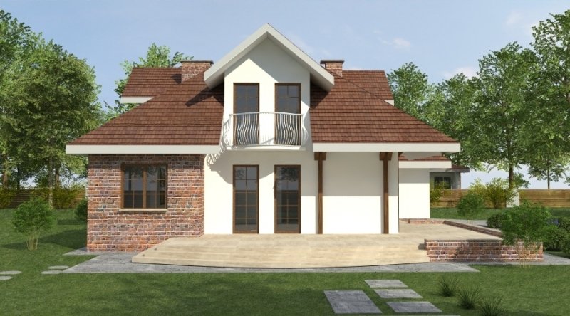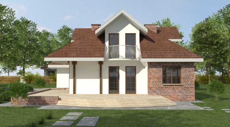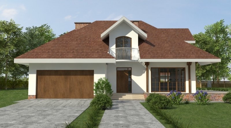 dom nadaje się do realizacji na nietypowej działce z wjazdem od południa. pokój dzienny w tym projekcie zaprojektowano od frontu.w głębi domu znajduje się kuchnia wraz z jadalnią. na poddaszu znajduje się cześć nocna - sypiania 2osobowa z dużą garderobą i dostępem do pokoju kąpielowego oraz 2 sypialnie. pomieszczenie przy pokoju kąpielowym można adaptować na np. pralnię. dom posiada duży garaż na 2 samochody osobowe o powierzchni ponad 43m2.