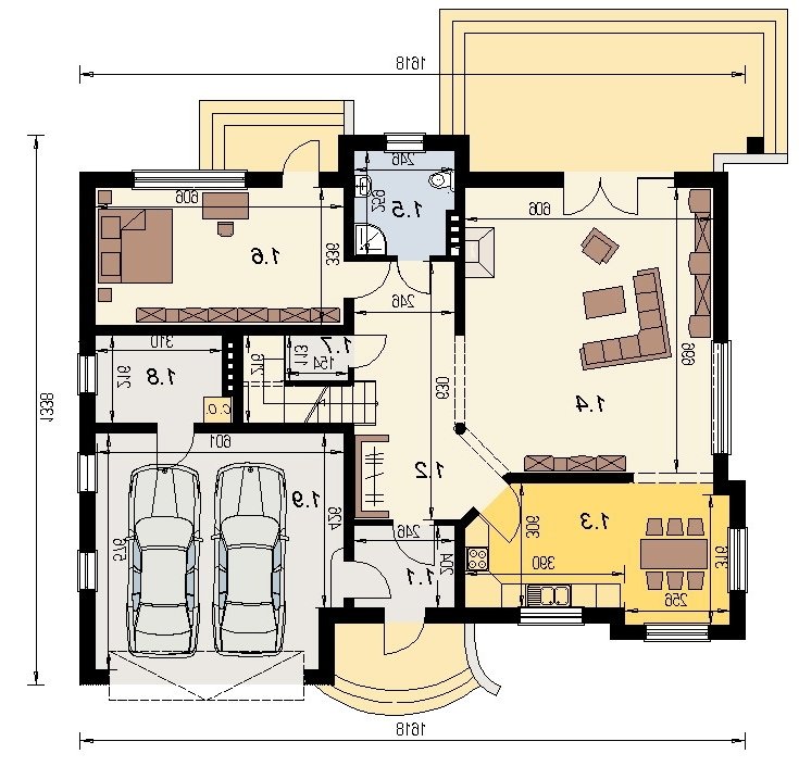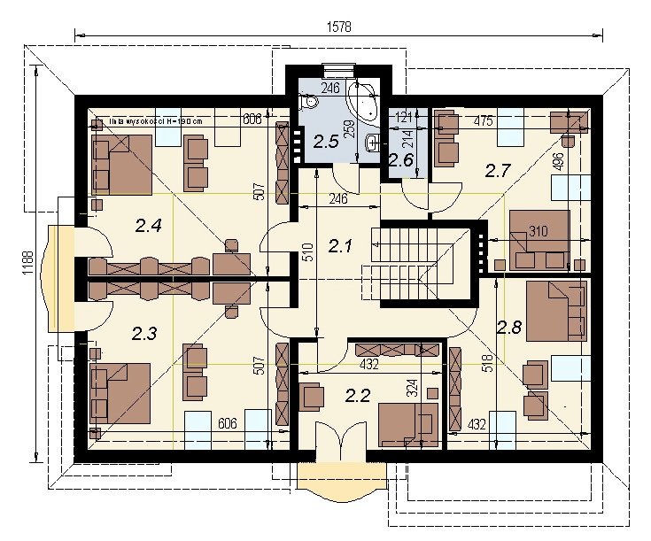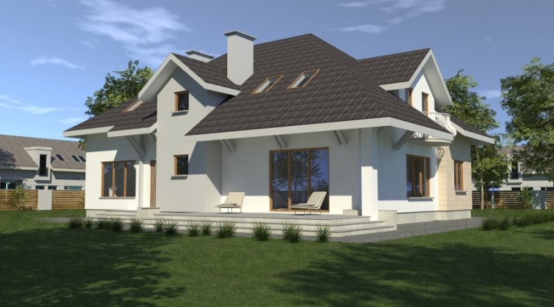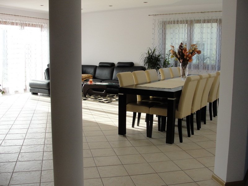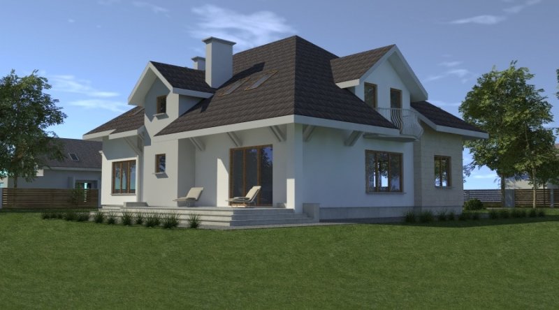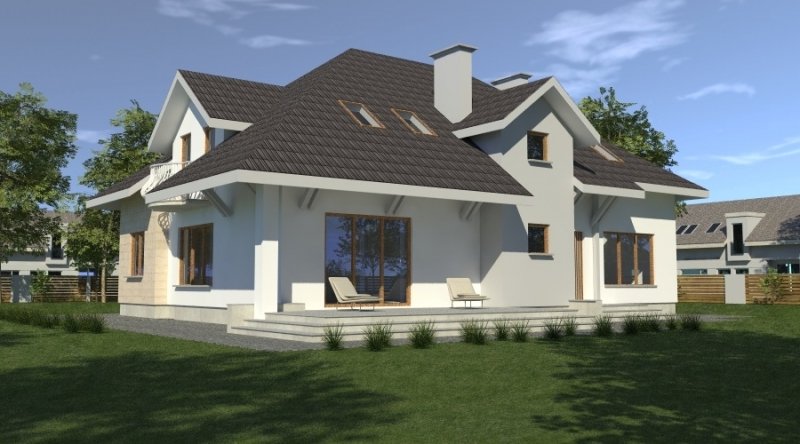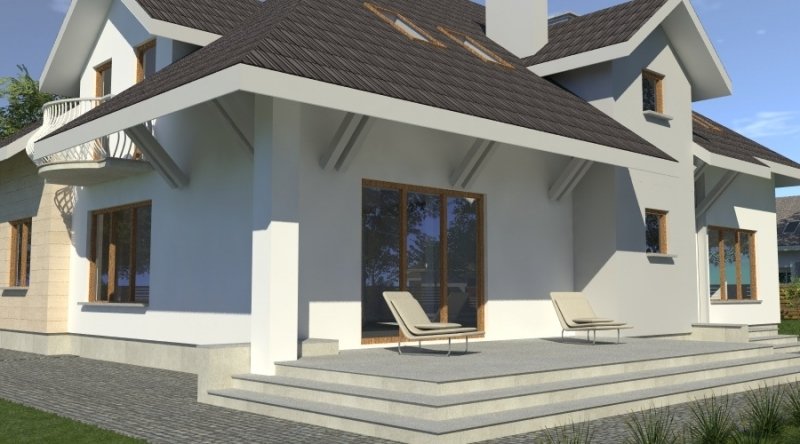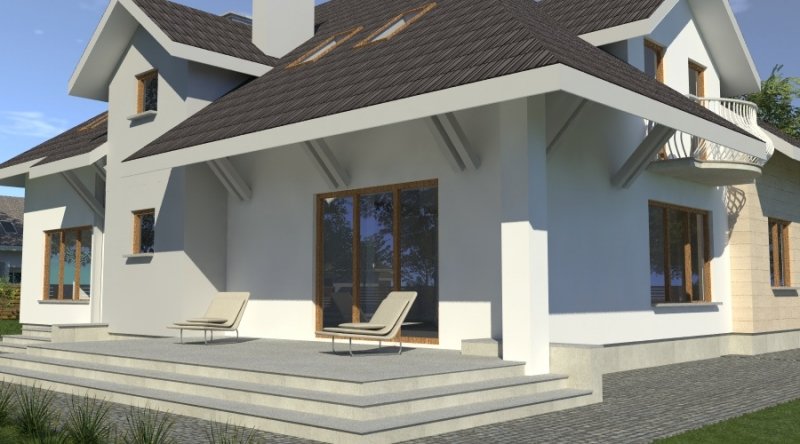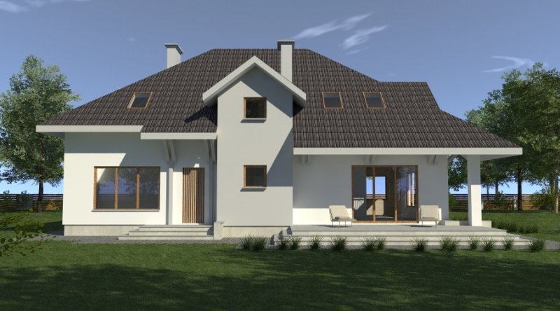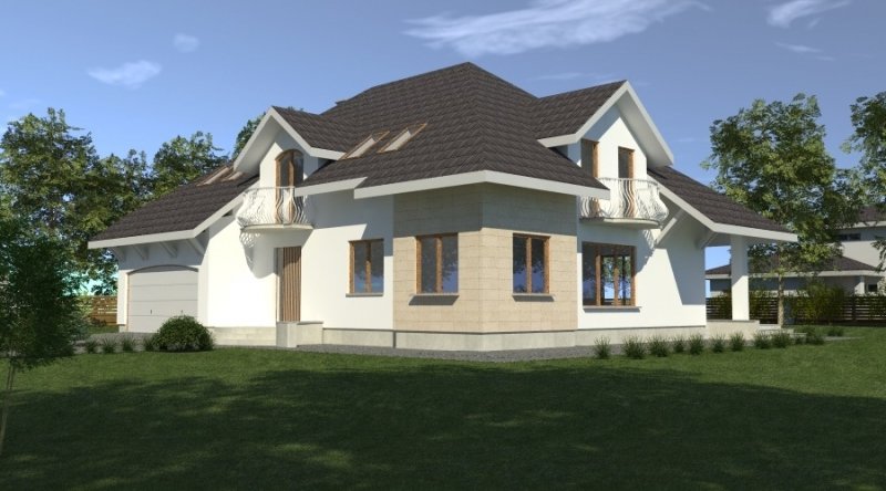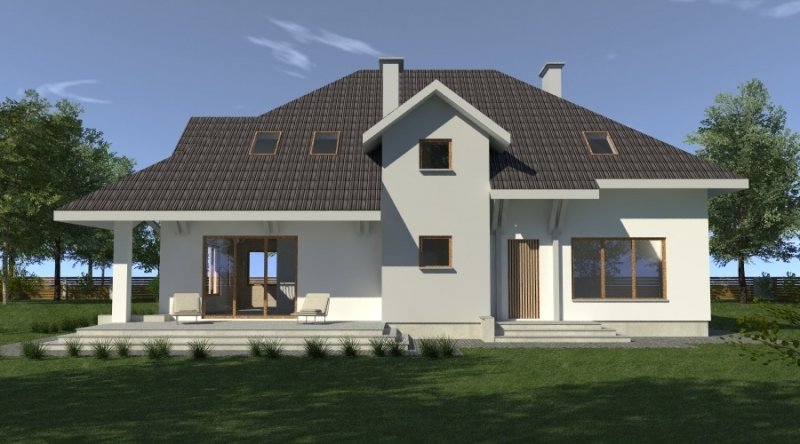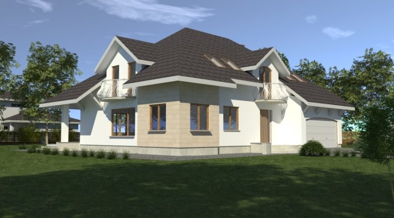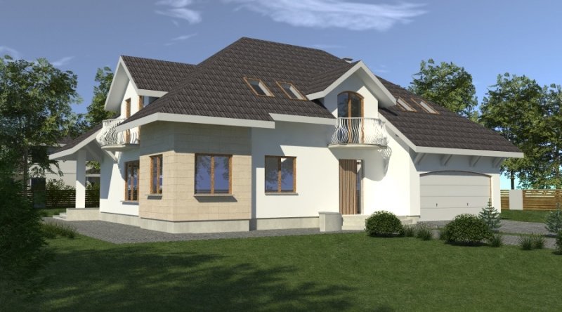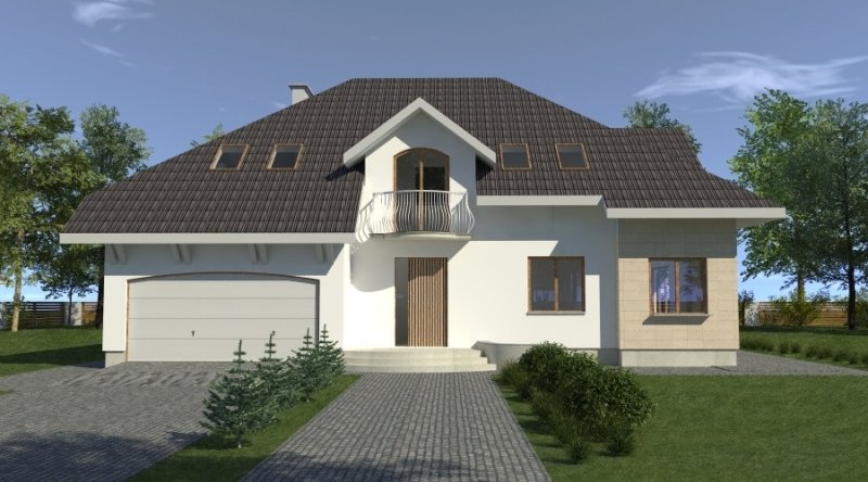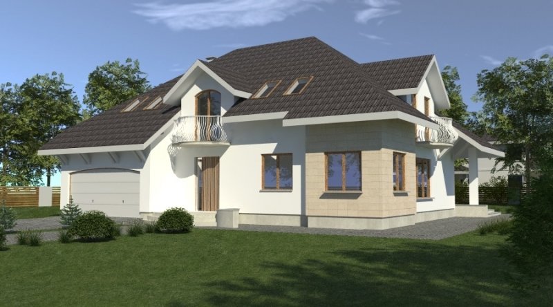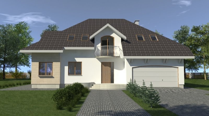 dom posiada duże, ustawne pomieszczenia o znacznych metrażach. przeznaczony do zamieszkania dla 5-6 osobowej rodziny, na parterze zlokalizowano strefę dzienną, na poddaszu zlokalizowano strefę nocną - sypialnie oraz pomieszczenia sanitarne. dom posiada wygodny garaż na 2 samochody.