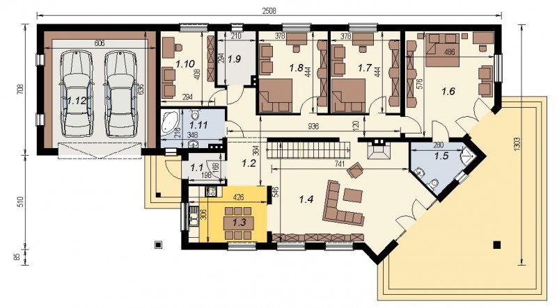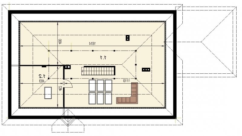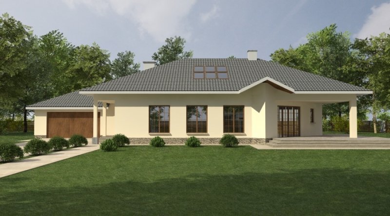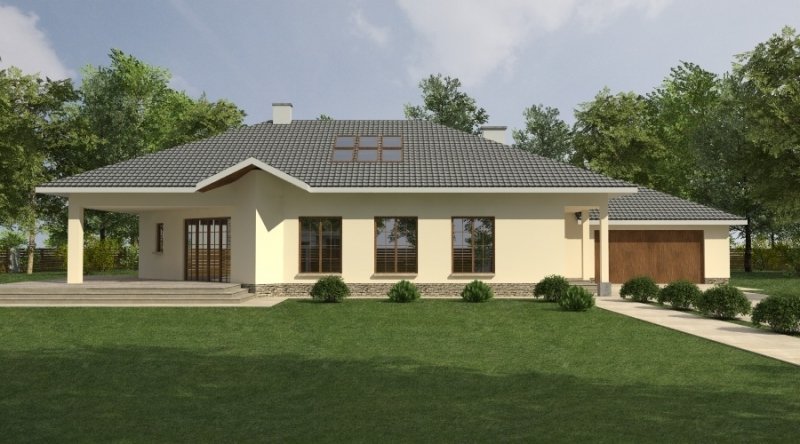 Obszerny dom jednorodzinny parterowy z poddaszem "otwartym" do dowolnego zagospodarowania przeznaczony na nietypową, wąską działkę.parter budynku posiada podział na strefę dzienną i nocną. dom posiada garaż na 2 samochody osobowe. podobne projekty to dj 18a ( z zagospodarowanym poddaszem ) oraz dj 1 ( mniejsza wersja dj 18 ).