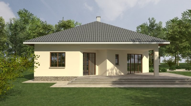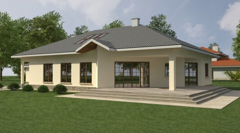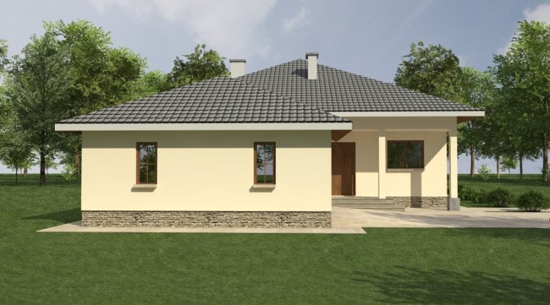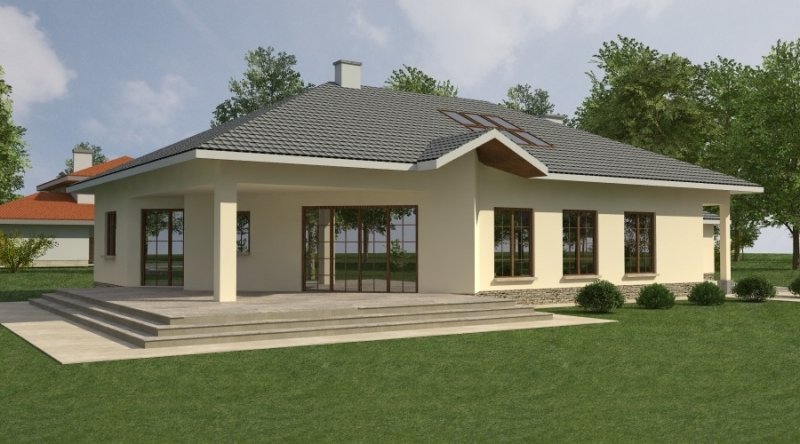Ściany zewnętrzne 2-warstwowe : Beton komórkowy ( 24cm) / Pustak ceramiczny (25cm) + styropian 20cm . Ławy fundamentowe tradycyjne. Ściany fundamentowe betonowe gr.24(25cm) z bloczków betonowych lub wylewane. Stropy - płyta żelbetowa . Zamiennie można zastosować strop gęstożeberkowy. Konstrukcja dachu - tradycyjna drewniana , pokrycie dachu z dachówki ceramicznej. Elewacje - pokryte tynkiem strukturalnym cienkowarstwowym.