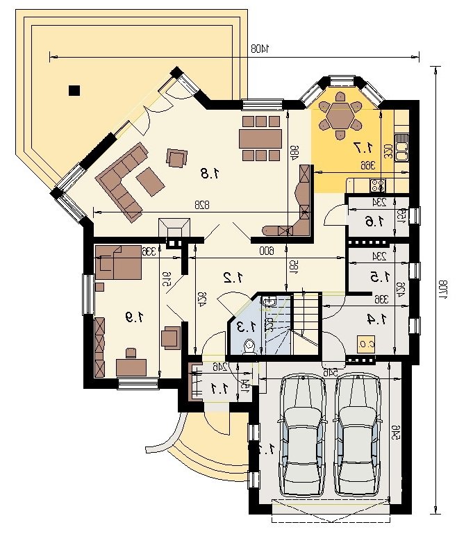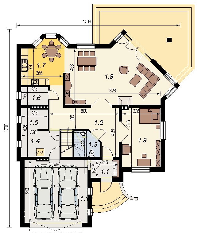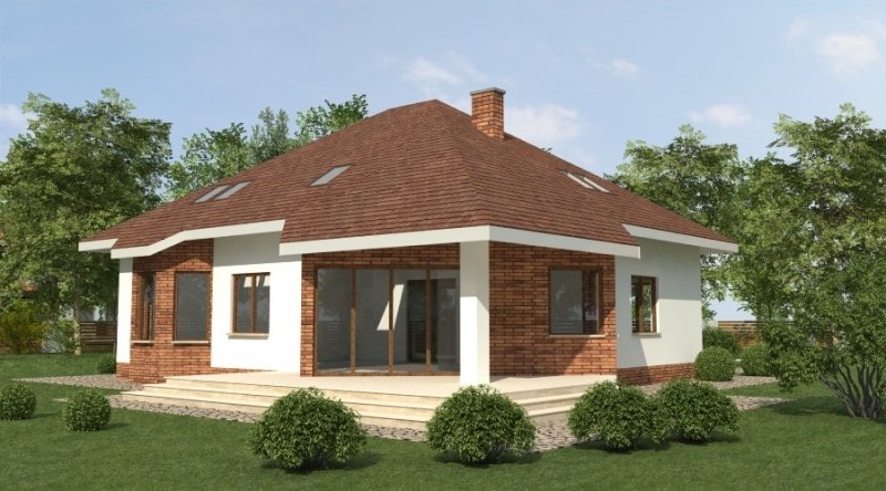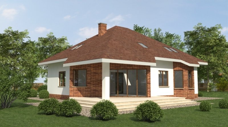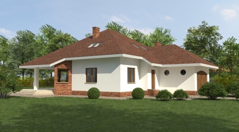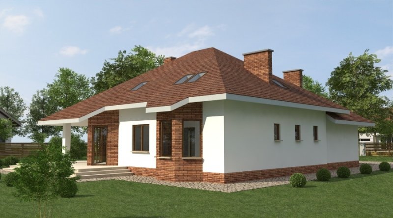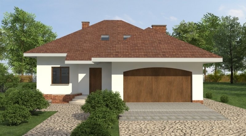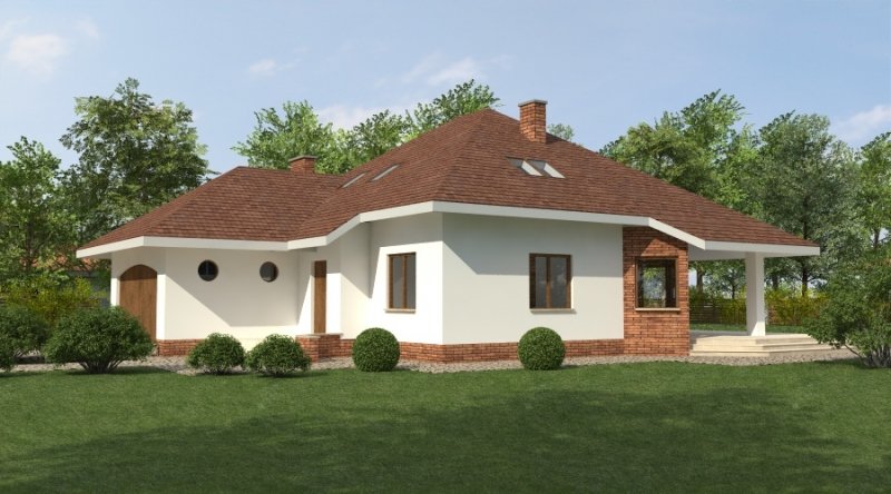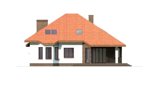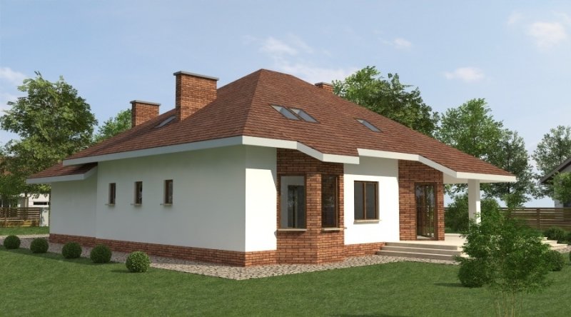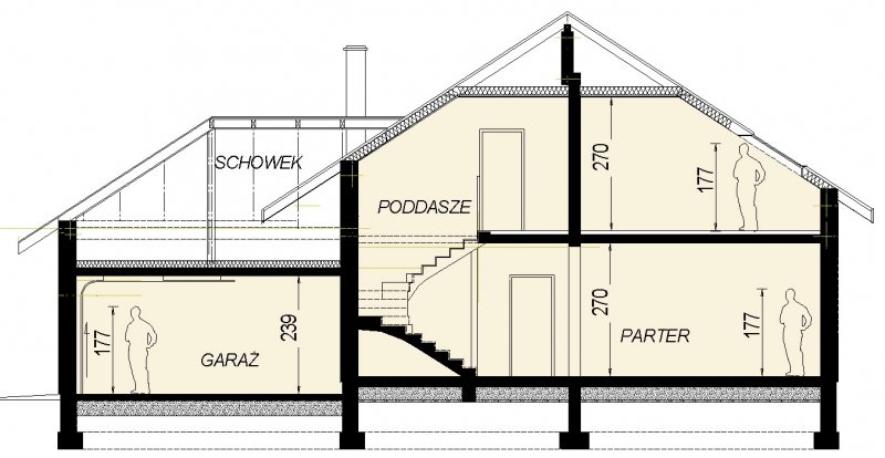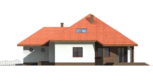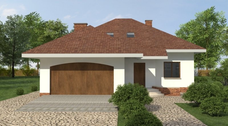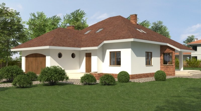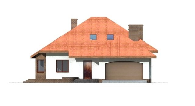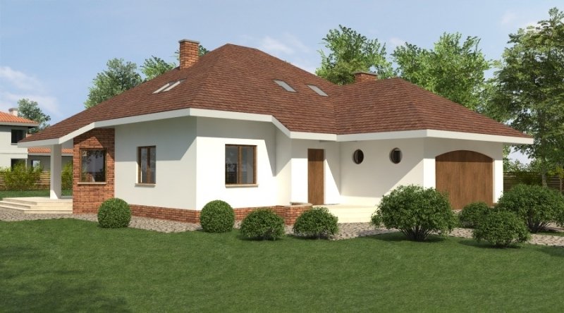 Dom jednorodzinny z poddaszem użytkowym przeznaczony dla 5-6 osobowej rodziny. na parterze część dzienna z dużym, znakomicie doświetlonym salonem i obszernym tarasem, dodatkowo duża sypialnia z własną łazienką doświetloną światłem naturalnym. Na poddaszu znajduje się strefa nocna. Dom posiada garaż na 2 samochody osobowe. nNd garażem znajduje się schowek dostępny "z garażu".