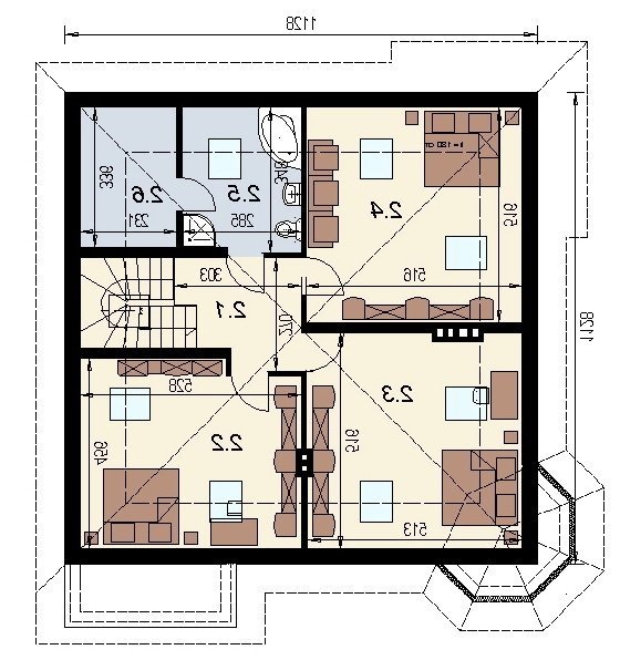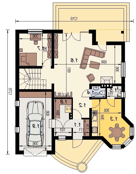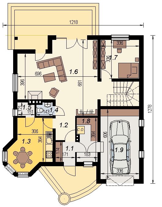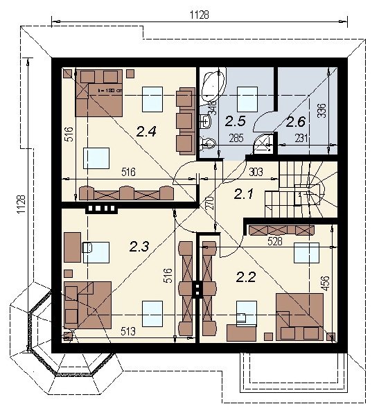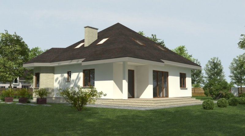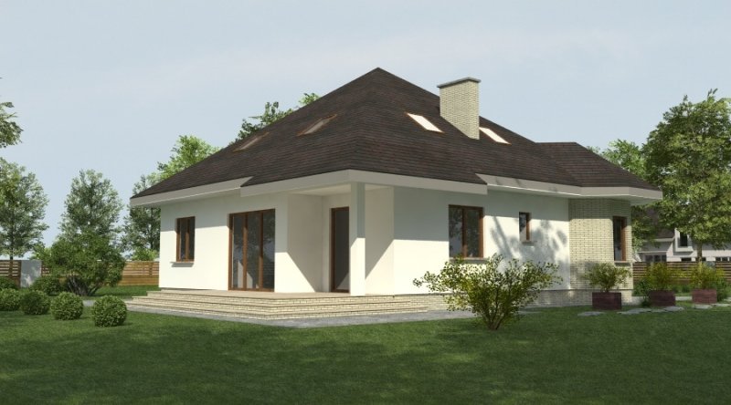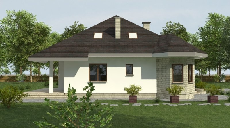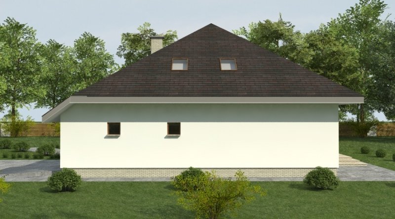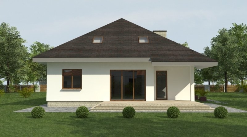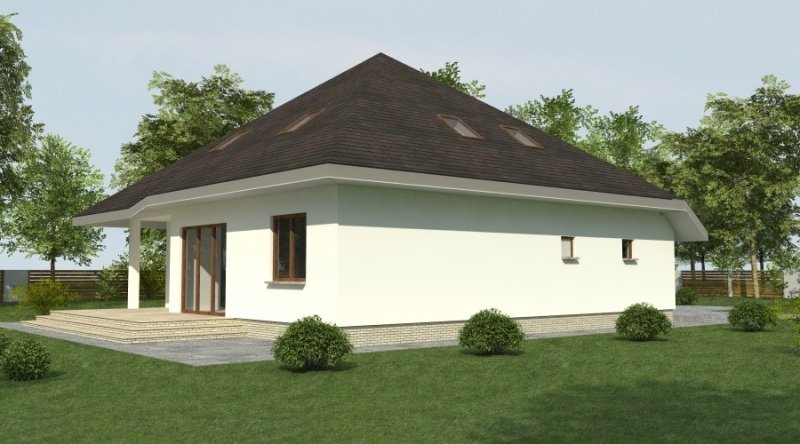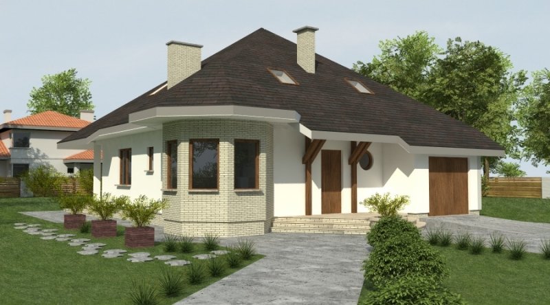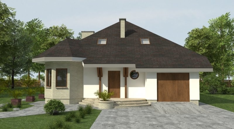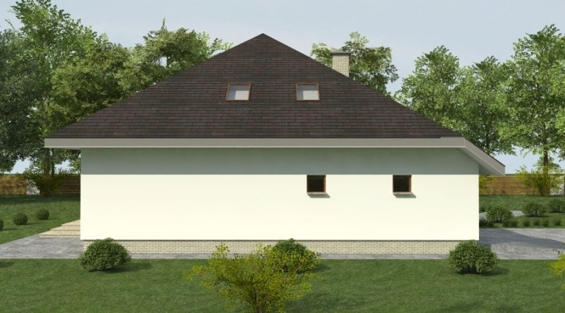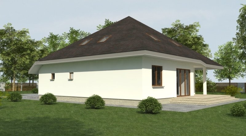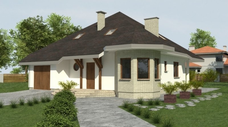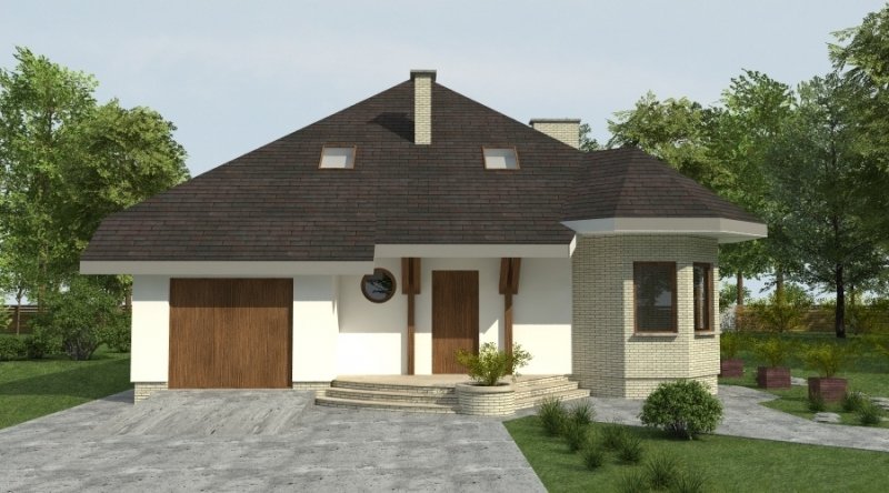 Dom z poddaszem użytkowym został opracowany na podstawie kwadratu. Układ funkcjonalny spełnia potrzeby 5 osobowej rodziny. Cechą charakterystyczną architektury jest wysunięta jadalnia na bazie sześciokąta. Na parterze zaprojektowano część dzienną. Na poddaszu znajduje się strefa nocna w skład której wchodzą 3 duże sypialnie oraz łazienka. Dom posiada wbudowany garaż na 1 samochód osobowy. Dom można podpiwniczyć. nadaje się do realizacji na wąskich bądź kwadratowych działkach.
