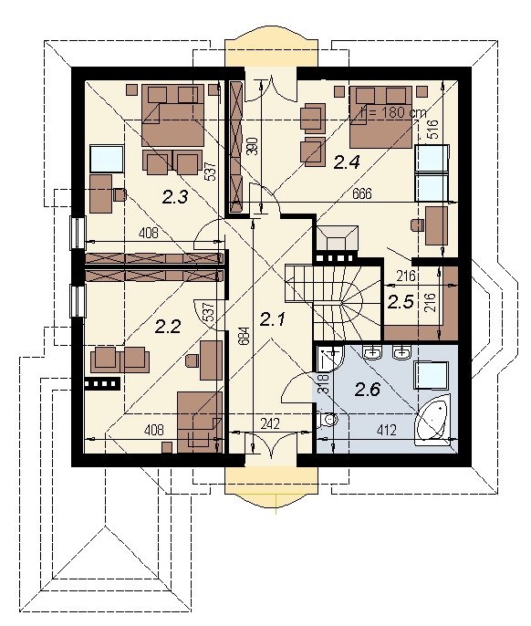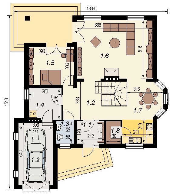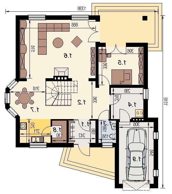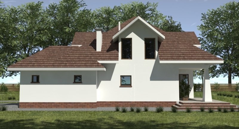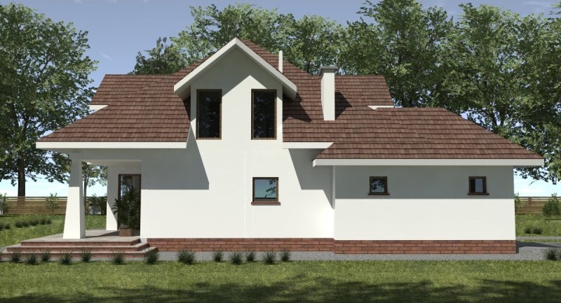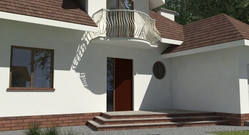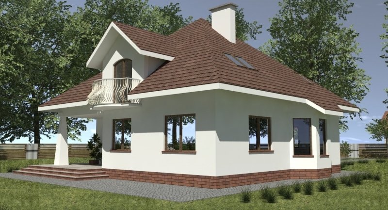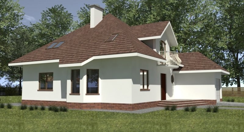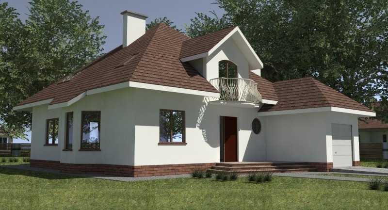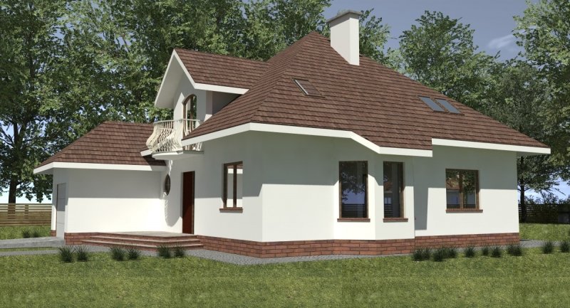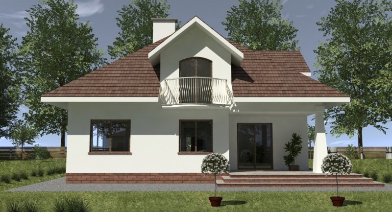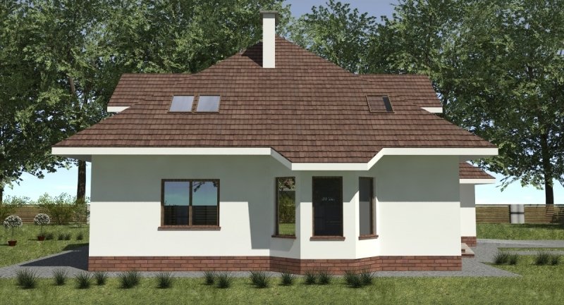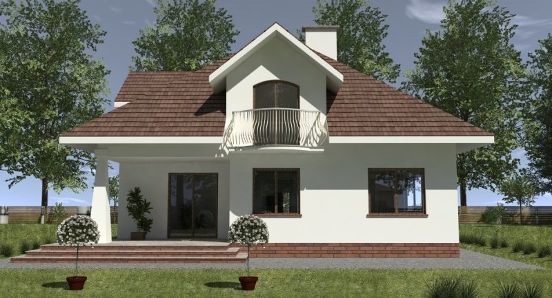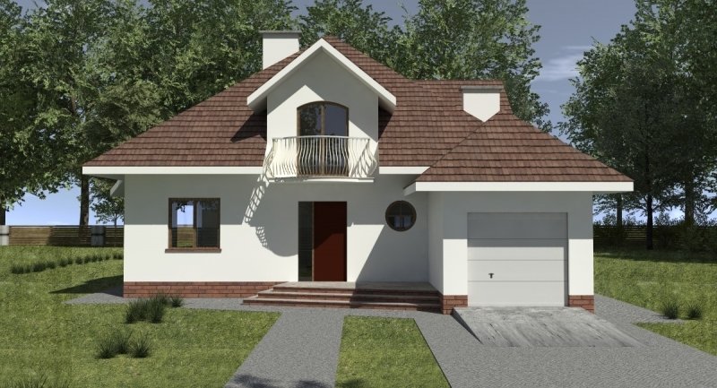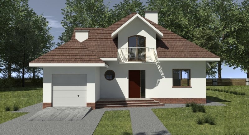 Projekt domu o typowej architekturze pasującej do zrealizowania na waskiej bądź kwadratowej działce podmiejskiej. układ funkcjonalny spełnia wymagania 5 osobowej rodziny. Parter domu pełni funkcję typową dzienną oraz gospodarczą. na poddaszu o funkcji nocnej zlokalizowano 3 sypialnie oraz łazienkę. Dom posiada wbudowany garaż na 1 samochód osobowy.