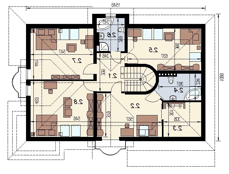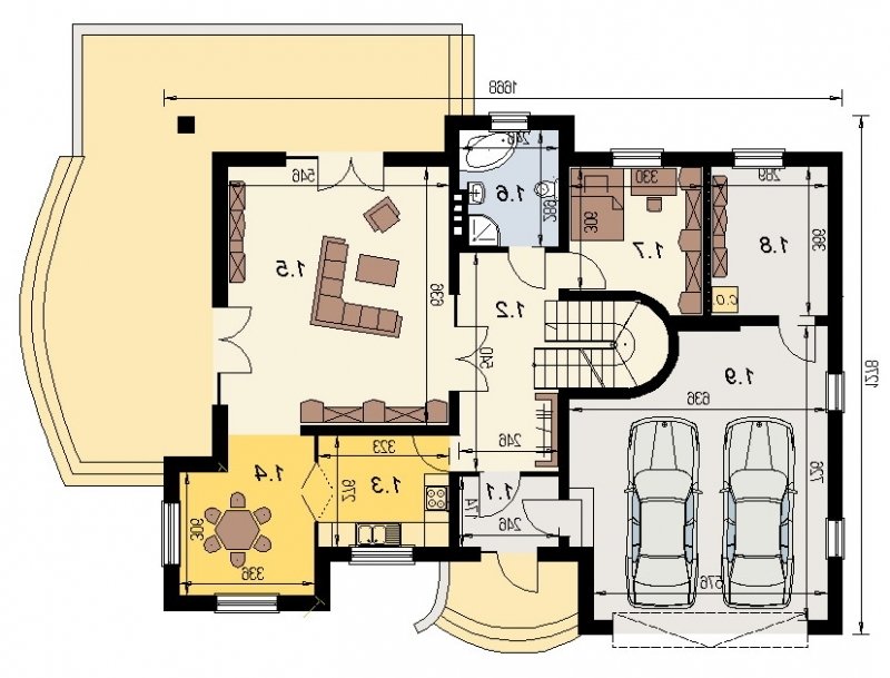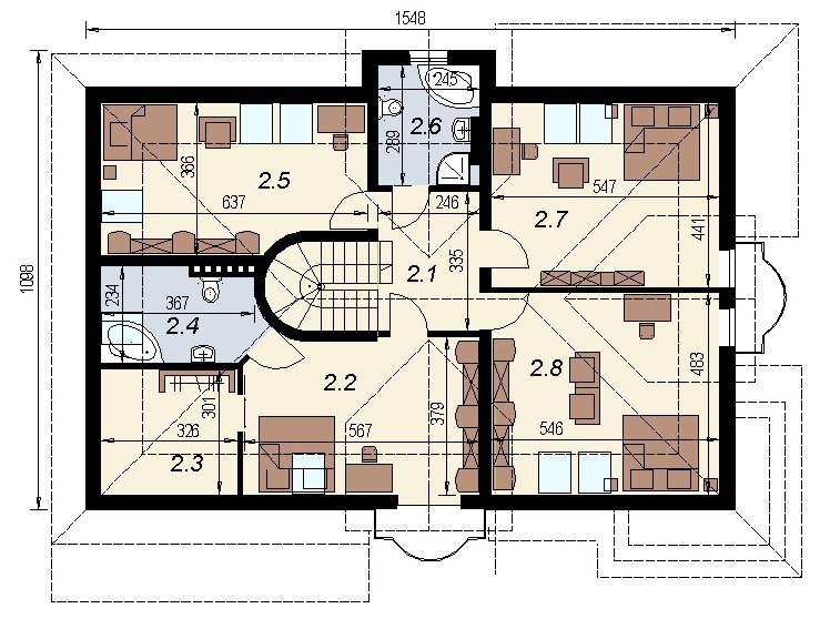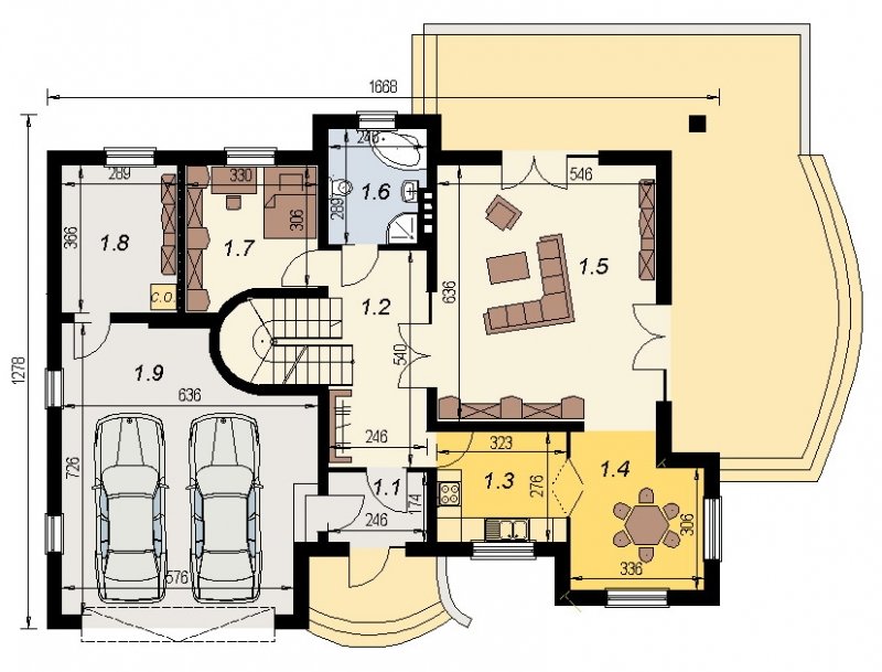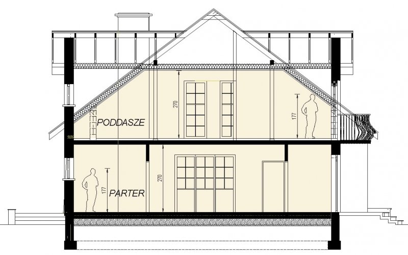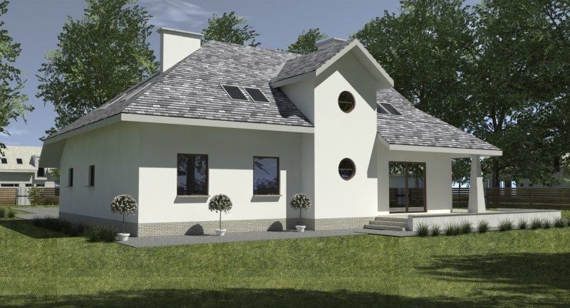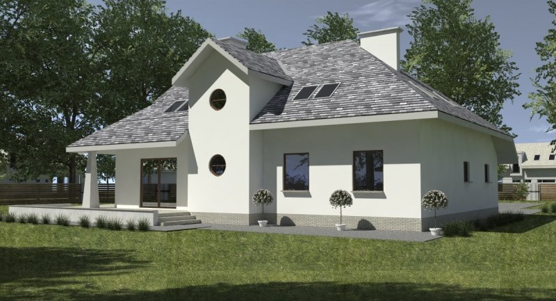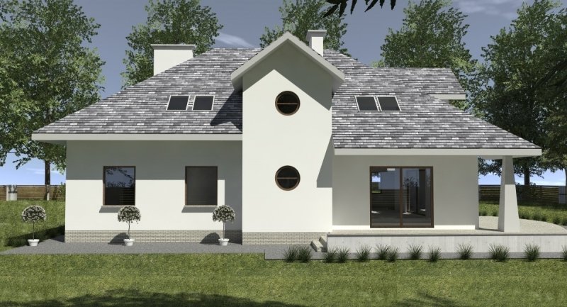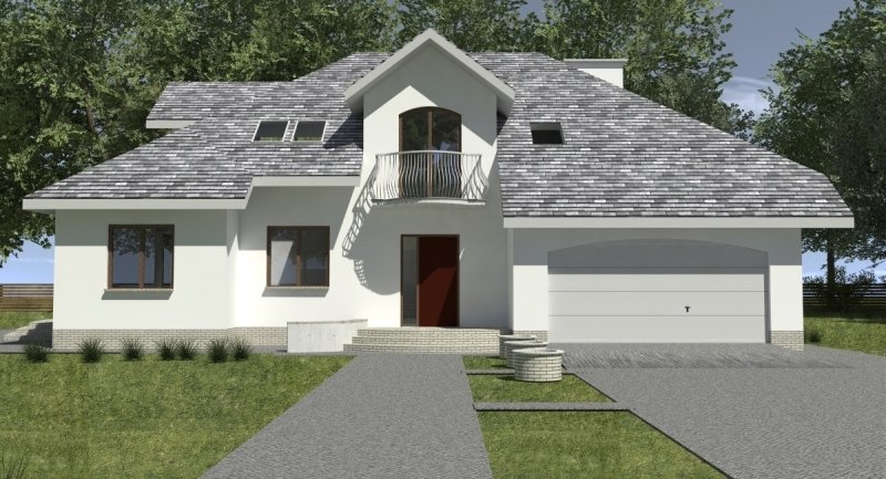 projekt jest bardzo popularny z uwagi na dobrze opracowany układ funkcjonalny odpowiadający potrzebom 5 osovowej rodziny. na parterze zlokalizowano strefę do pobytu dziennego, poddassze jest strefą typowo nocną z sypialniami oraz pomieszczeniami sanitarnymi i pomocniczymi. dom posiada wygodny garaż na 2 samochody. dostępna jest wersja projektu z częściowym podpiwniczeniem oraz wersja z powiększoną łazienką na poddaszu.