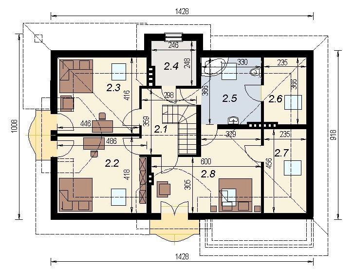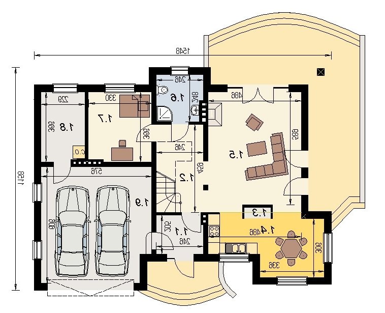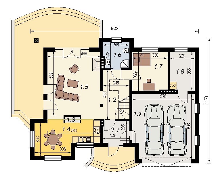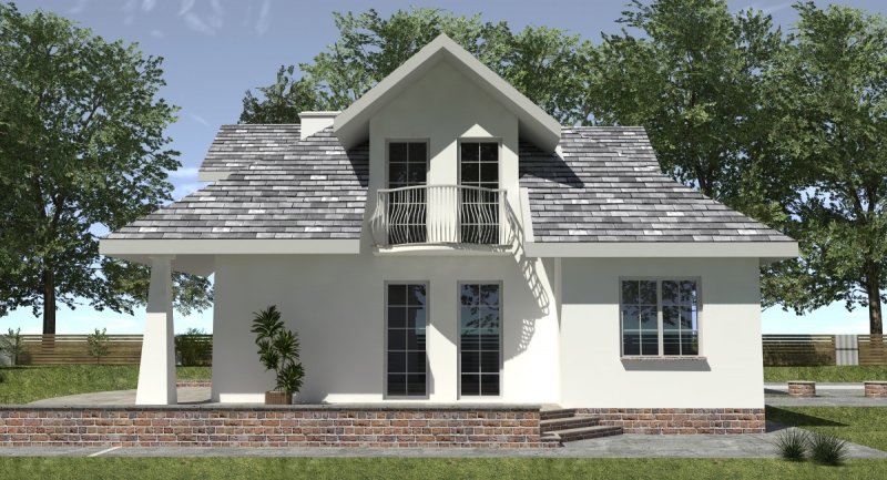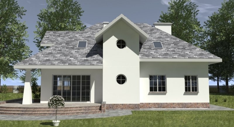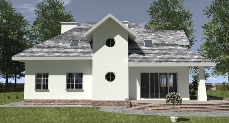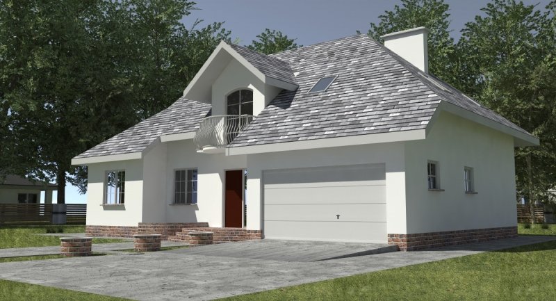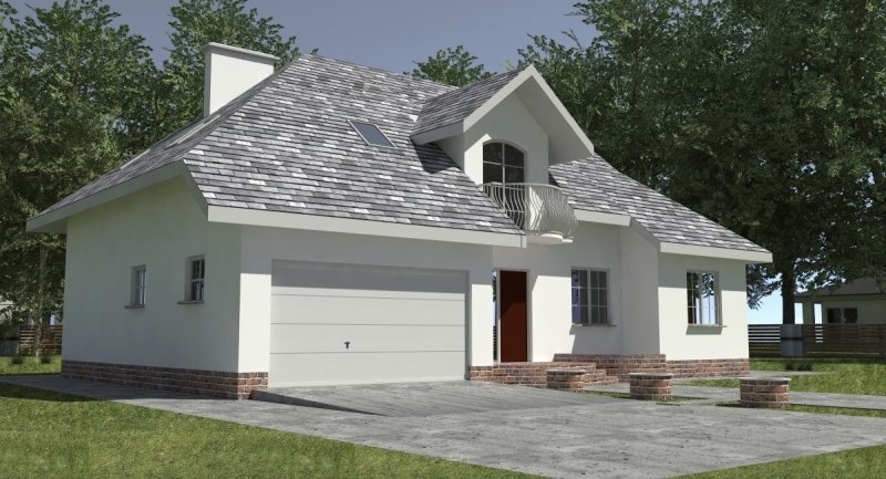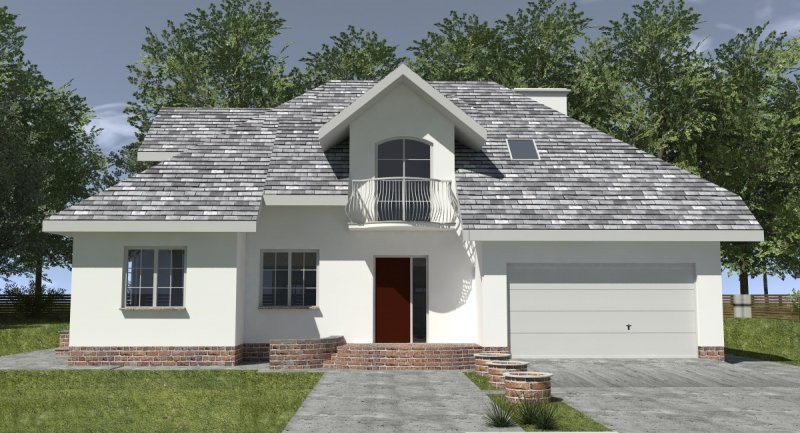 Dom jednorodzinny przeznaczony do zamieszkania dla 5-6 osobowej rodziny. Na parterze zlokalizowano część dzienną i gospodarczą. na poddaszu znajduje się część nocna. Uwzględniono garaż na 2 samochody osobowe. Dostępna jest również wersja projektu z częściowym podpiwniczeniem.