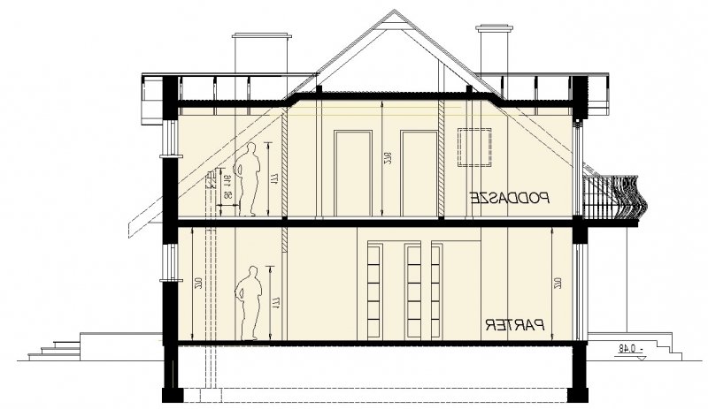 Projekt w tej wersji posiada instalację wentylacji z odzyskiem ciepła oraz zmodyfikowane grubości izolacji fundamentów, podłóg, ścian, stropów i dachu.