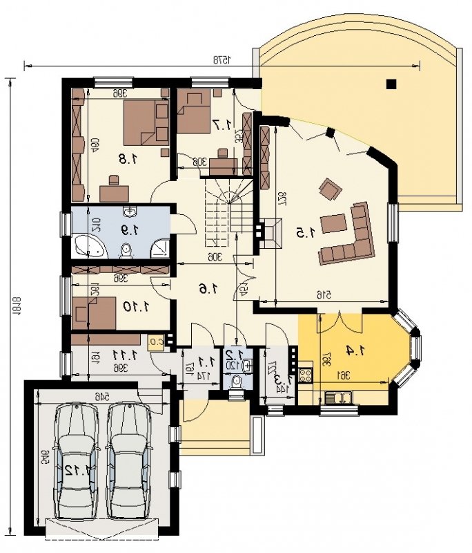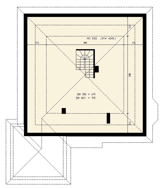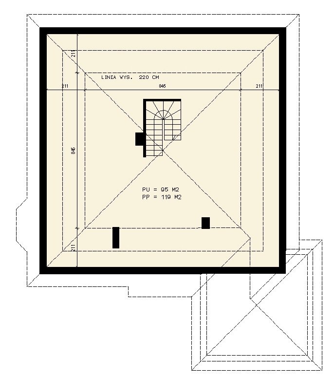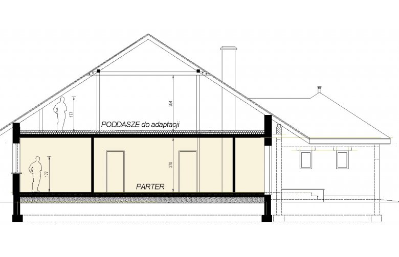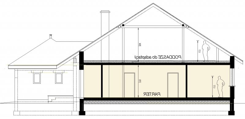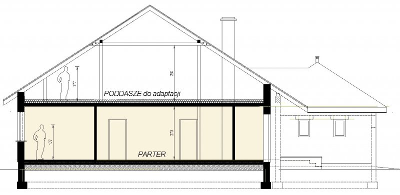 Projekt w tej wersji posiada instalację wentylacji z odzyskiem ciepła oraz zmodyfikowane grubości izolacji fundamentów, podłóg, ścian, stropów i dachu.