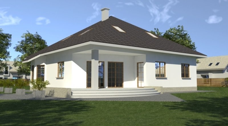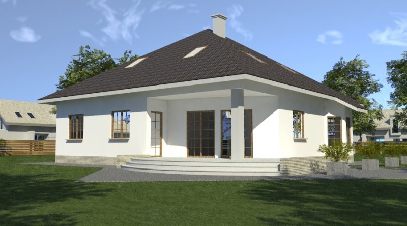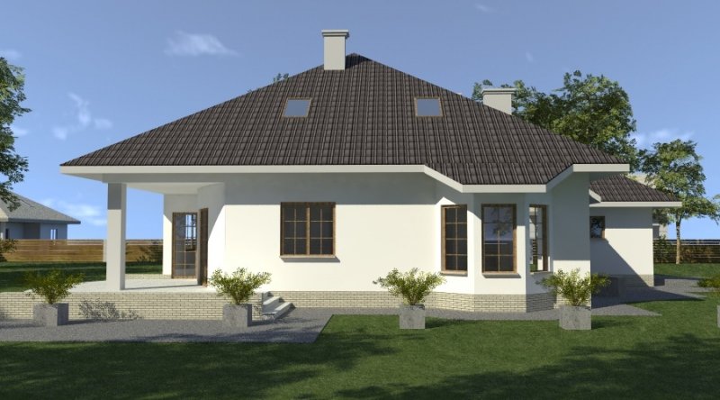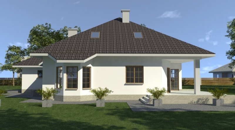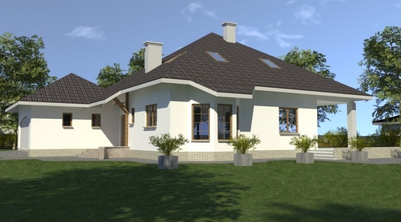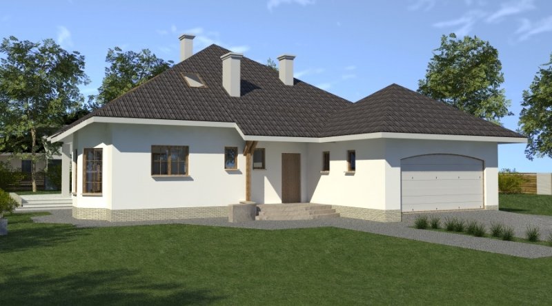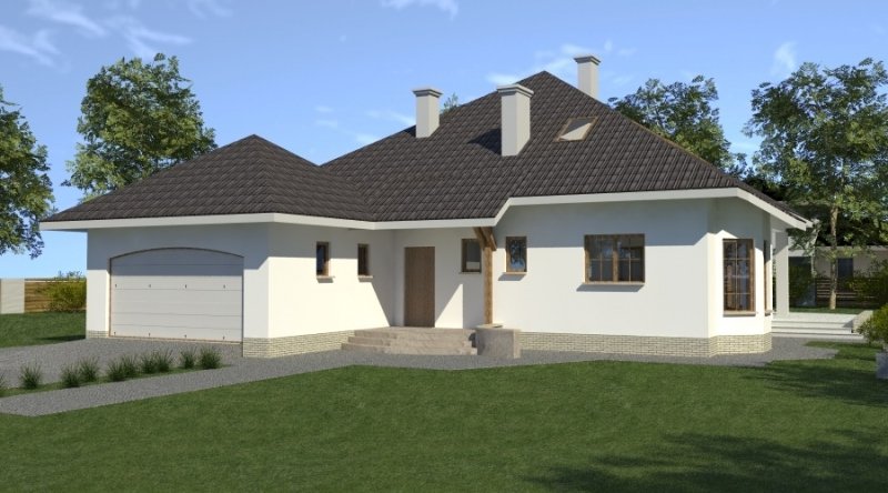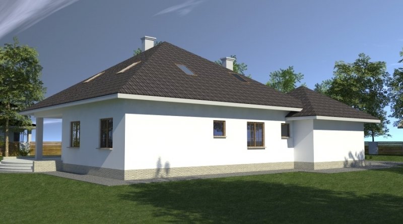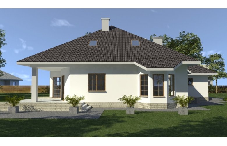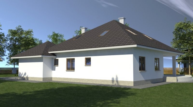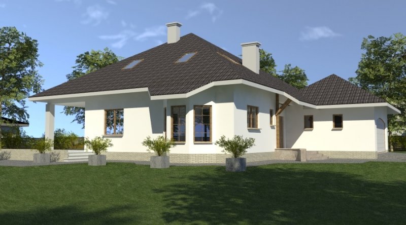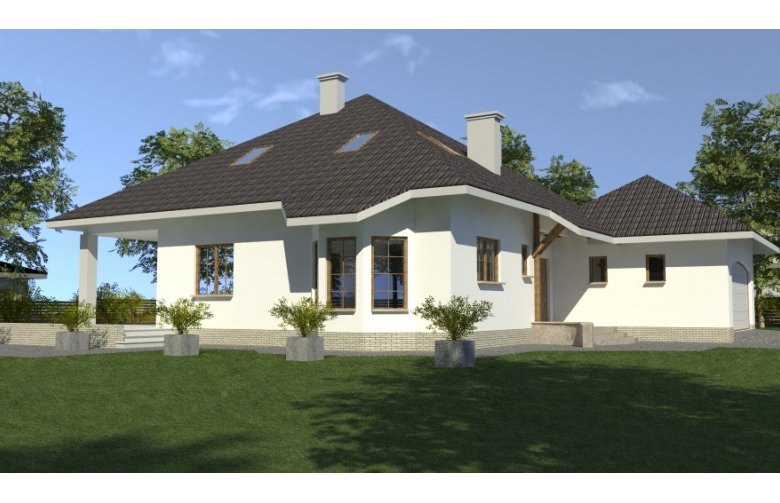 Obszerny dom parterowy z poddaszem do zagospodarowania w późniejszym okresie. Strefa dzienna obejmuje kuchnie z aneksem i schowkiem, wc oraz duży salon z kominkiem. Dom posiada garaż na 2 samochody osobowe.