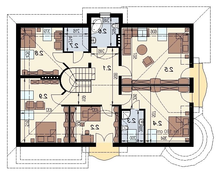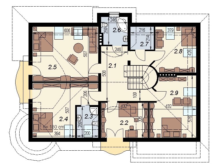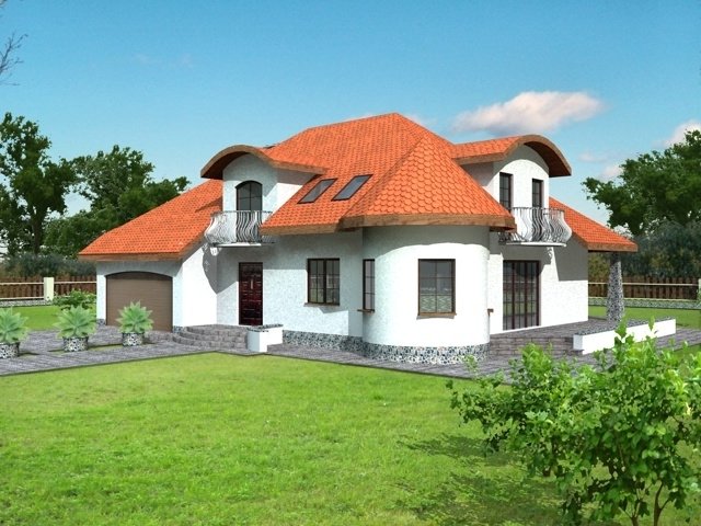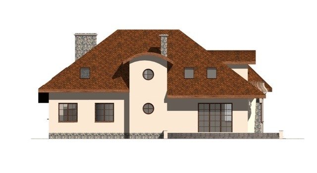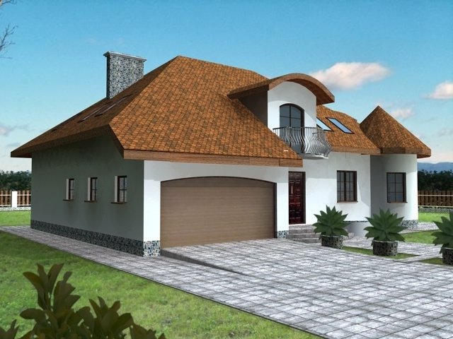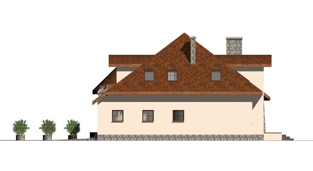 Dom z poddaszem użytkowym przeznaczony dla 5-6 osobowej rodziny. Na parterze zaprojektowano część dzienną, na poddaszu zlokalizowano 4 sypialnie oraz pomieszczenia sanitarne. Dom posiada wbudowany garaż na 2 samochody osobowe. Dostępna wersja z 6-kątną jadalnią oraz 2-spaowymi lukarnami tak jak w projekcie dj 59.