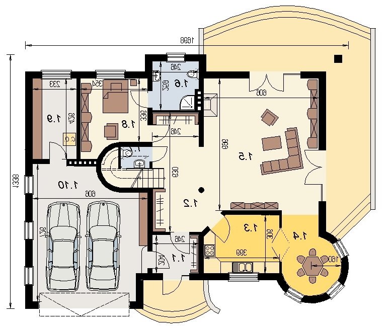 Projekt w tej wersji posiada instalację wentylacji z odzyskiem ciepła oraz zmodyfikowane grubości izolacji fundamentów, podłóg, ścian, stropów i dachu.