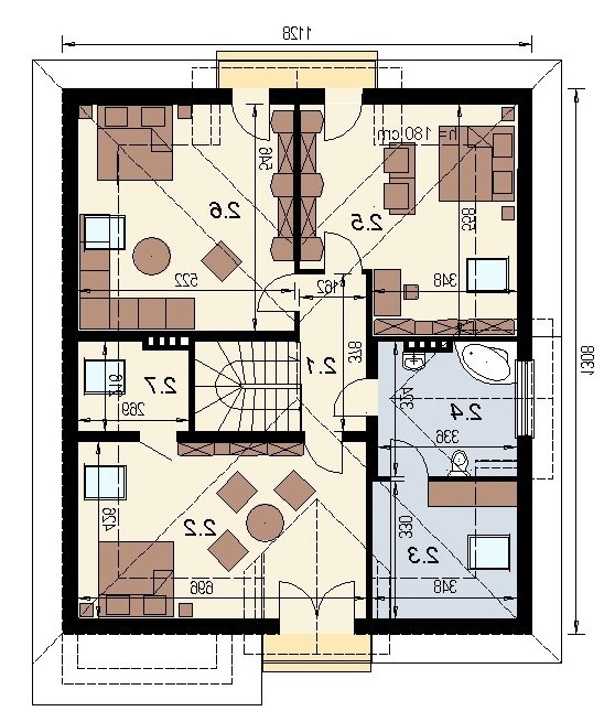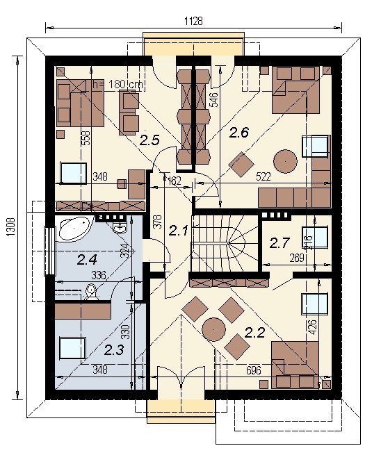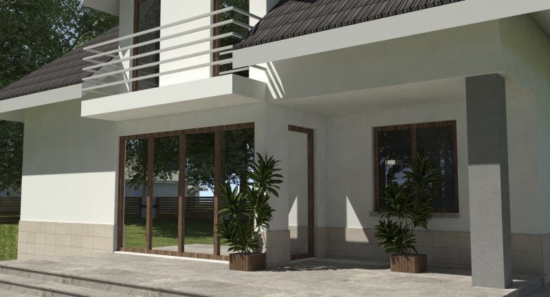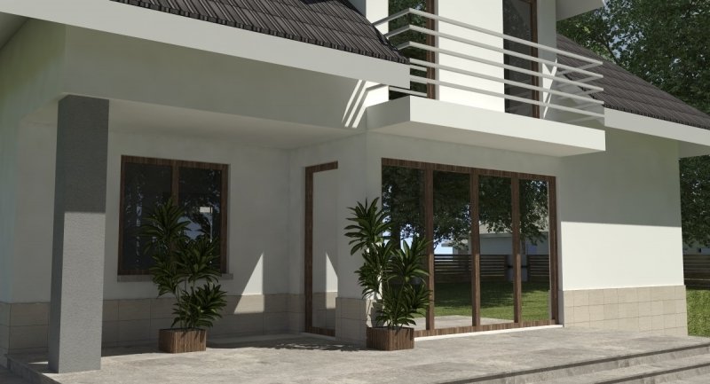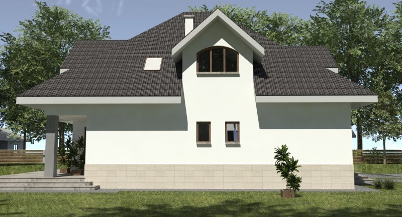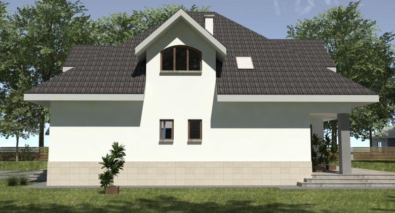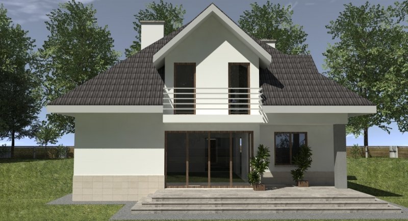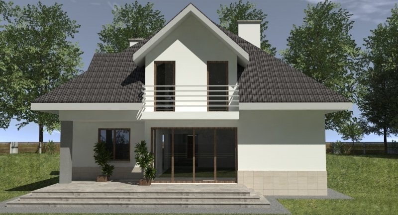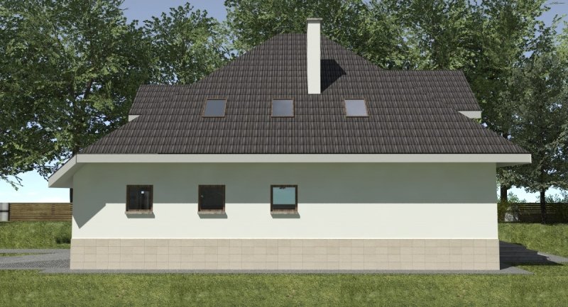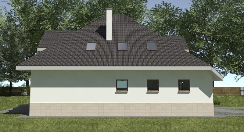 Powierzchnia mieszkalna domu to prawie 200 m2. Na powierzchnię wpłynęło podwyższenie ścianki kolankowej na poddaszu oraz zwiększenie nachylenia połaci dachowej ( 42 st.). Ta zmiana "dodała" do powierzchni mieszkalnej około 35 m2 . Dzięki temu rozwiązaniu przy niewiele większych kosztach realizacji uzyskano dodatkowo znaczne powiększenie powierzchni.