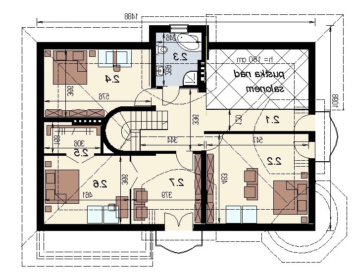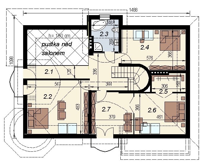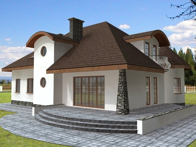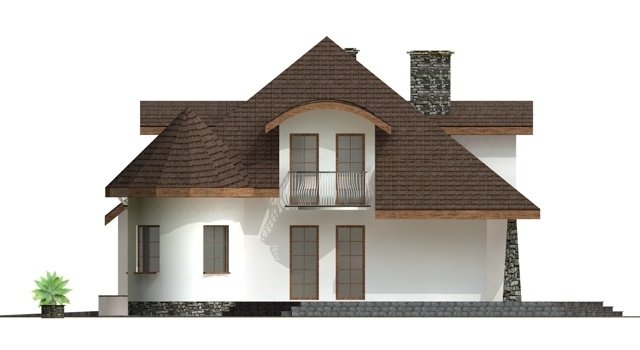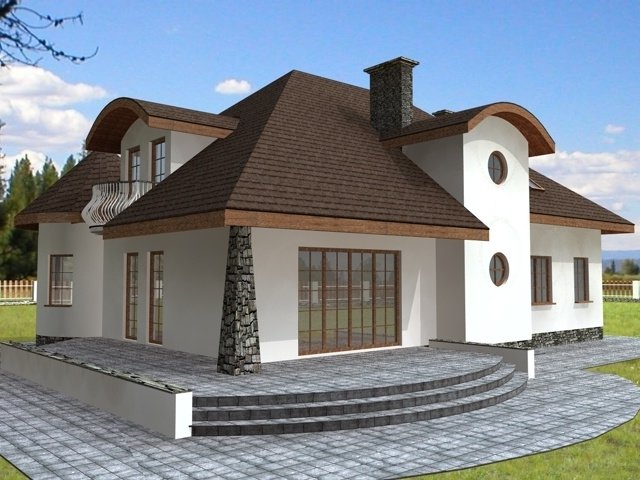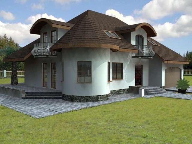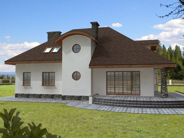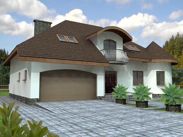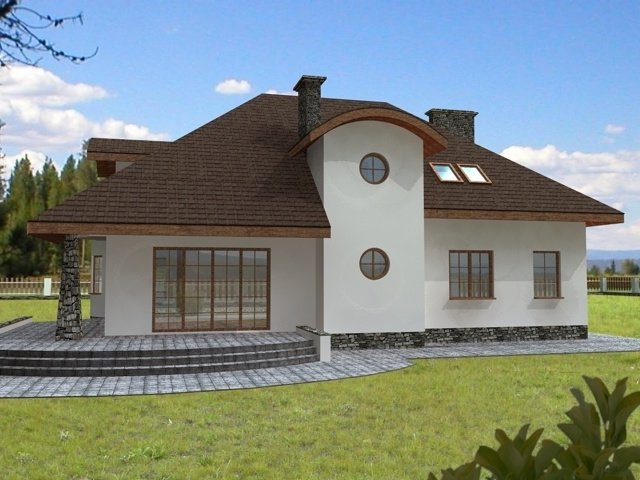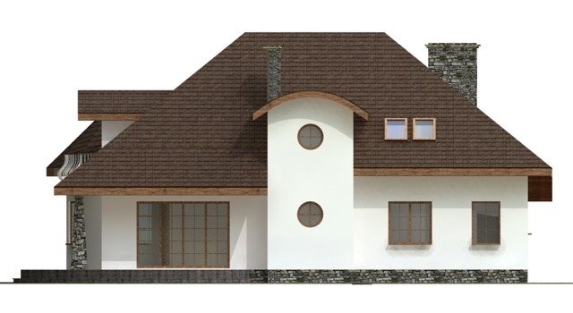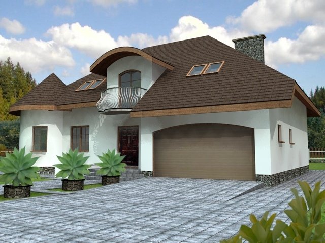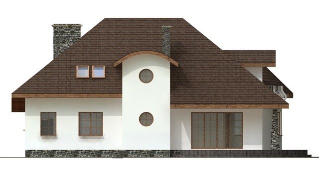 Elementami wyrózniającymi ten dom spośród innych o architekturze typowej jest okrągła wieżyczka, w której znajduje się nastrojowa jadalnia dla 6 osób oraz lukarny z zaokrągloną połacią dachową. Łącznie elementy te tworzą ciekawy efekt. Dodatkowo we wnętrzu domu znajduje się salon bez stropu (pustka nad salonem) oraz długa galeria z widokiem na salon, prowadząca do wejścia na balkon.