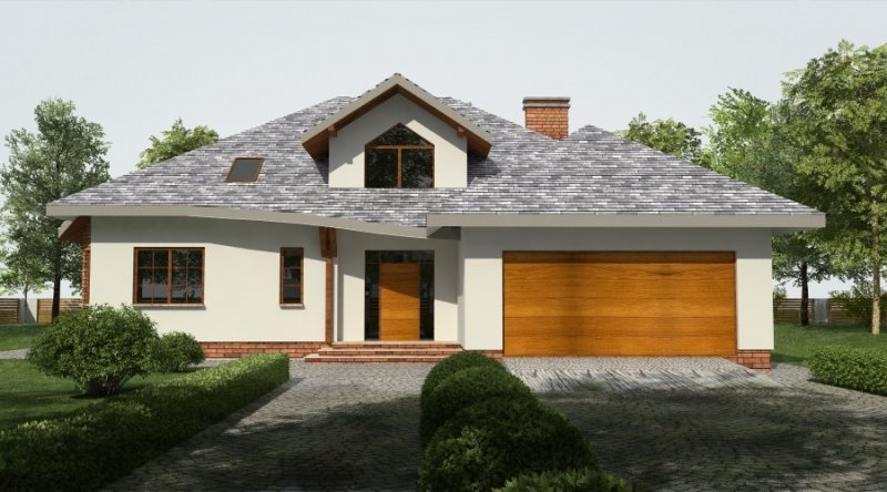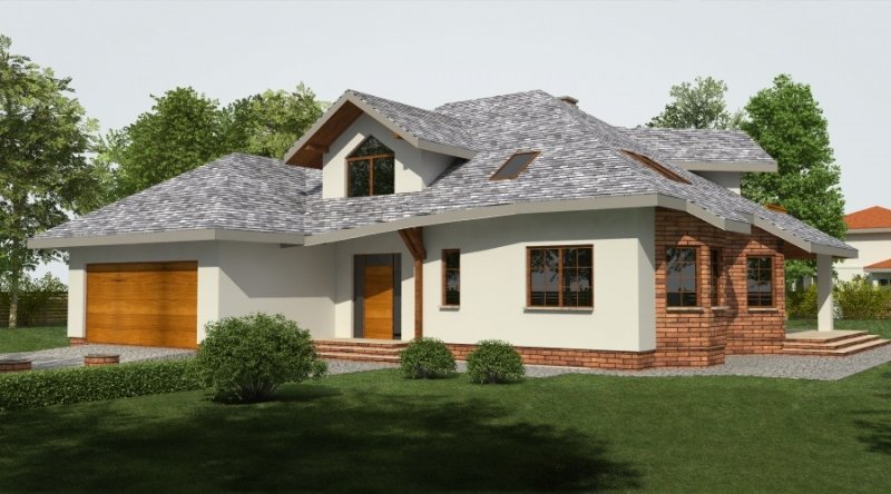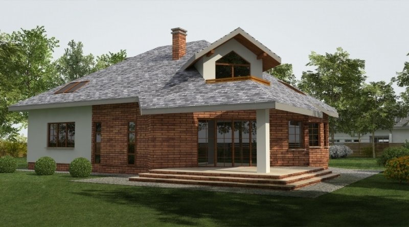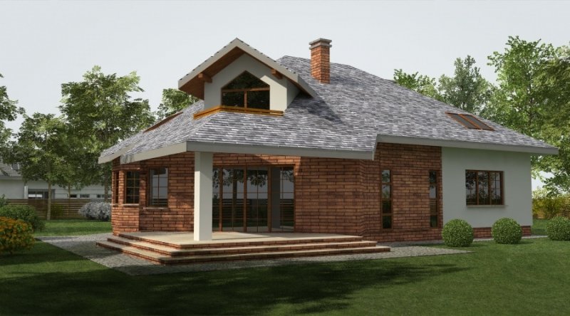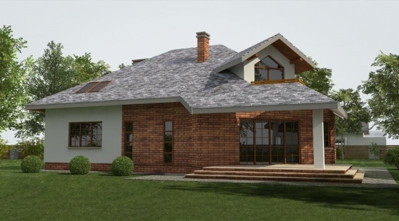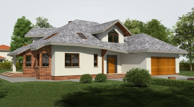 Projekt jest wersją powiększoną projektu DJ 179, któy cieszy się dużą popularnością. Dodano także lukarny oraz balkon nad zadaszeniem tarasu.