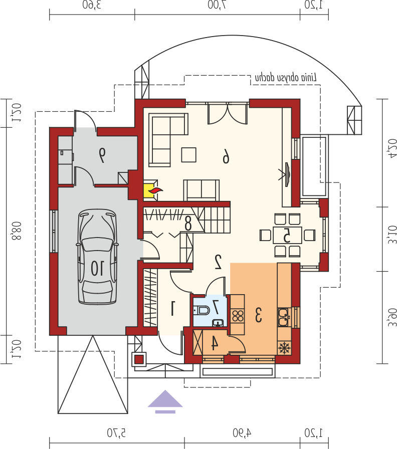 Dodatkowo na parterze: spiżarnia, toaleta, garderoba pod schodami, duża kotłownia i garaż