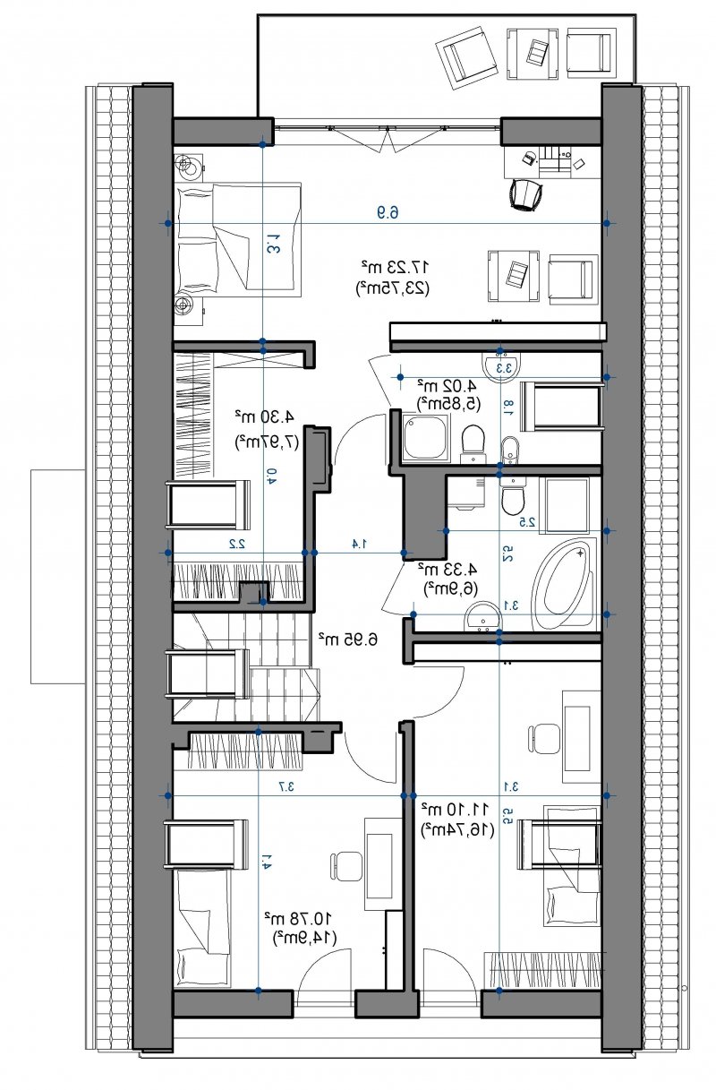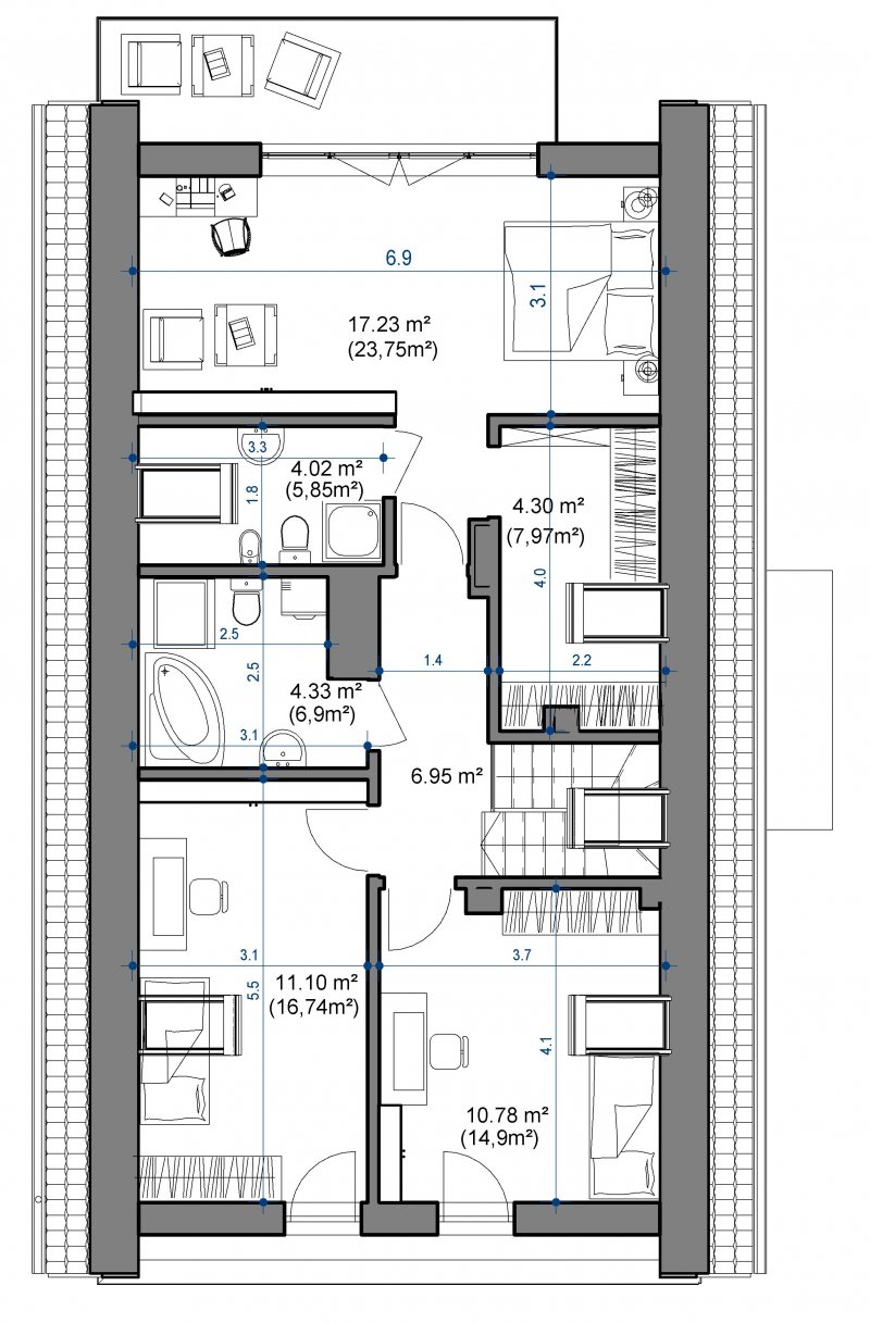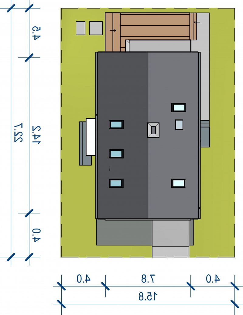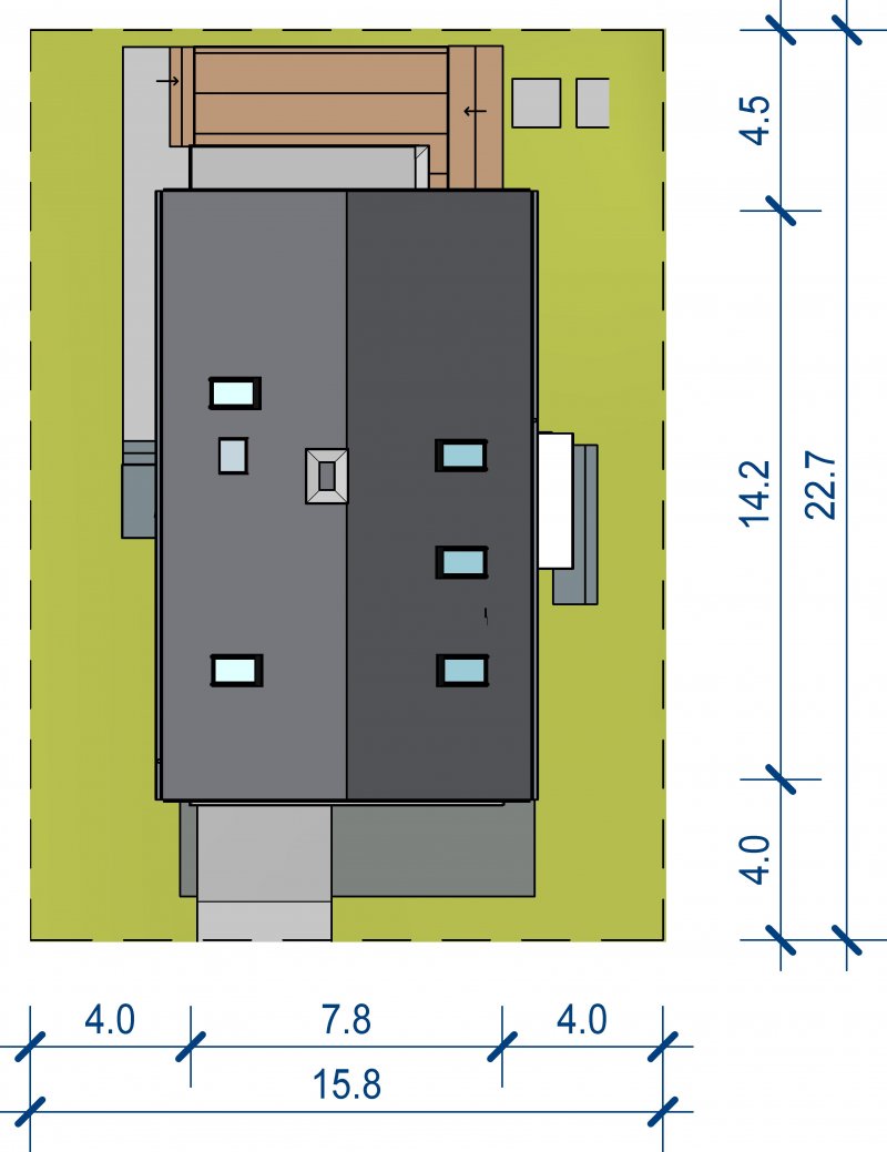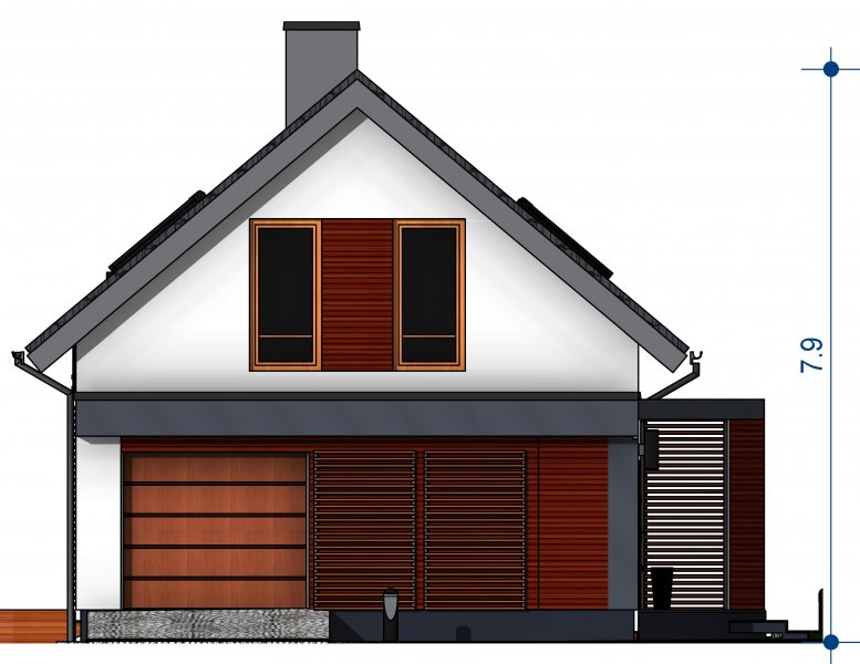 Prosty, tani w budowie dom na wąską działkę - o zwartej bryle i atrakcyjnej formie. Szerokość domu wynosi tylko 7,8m.