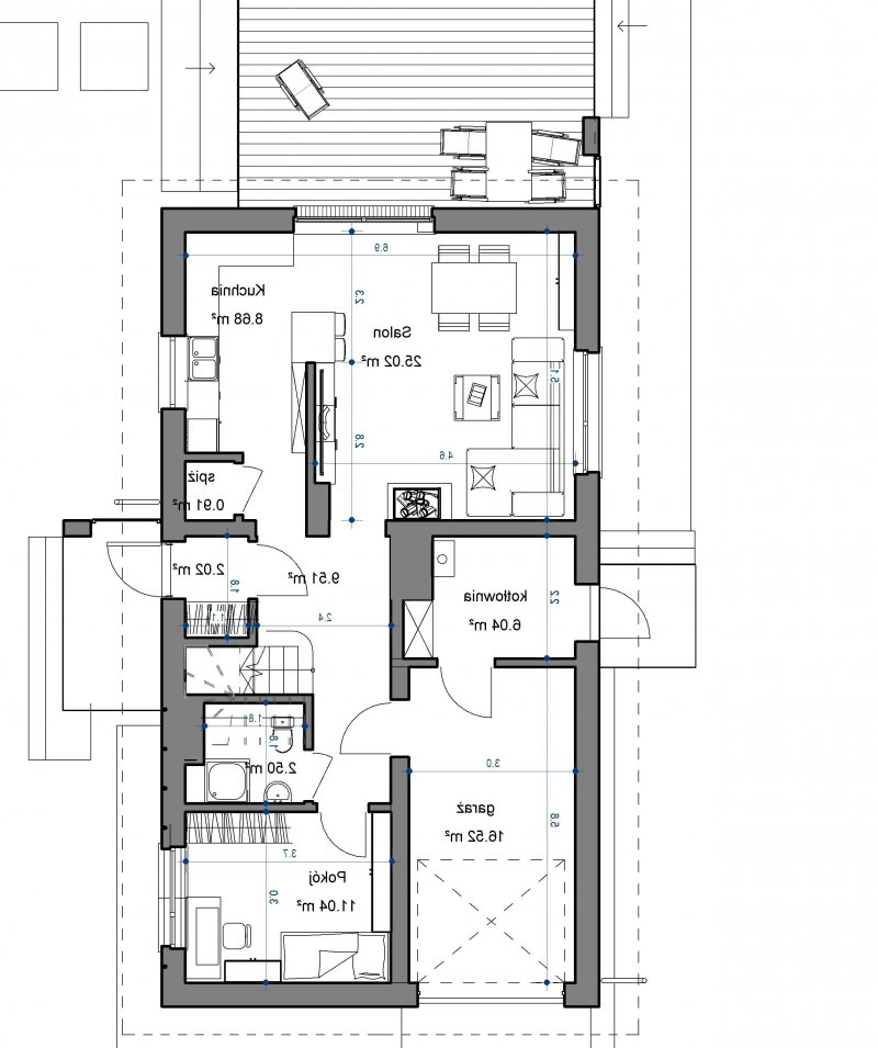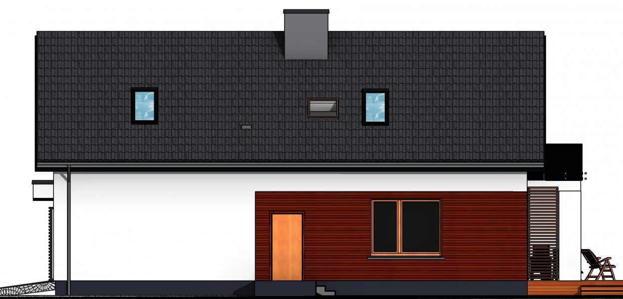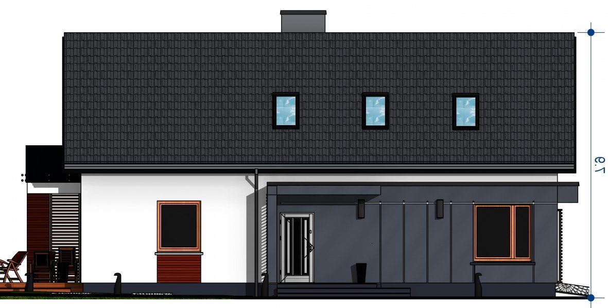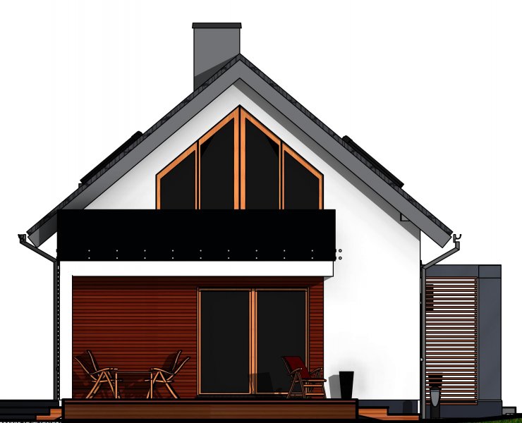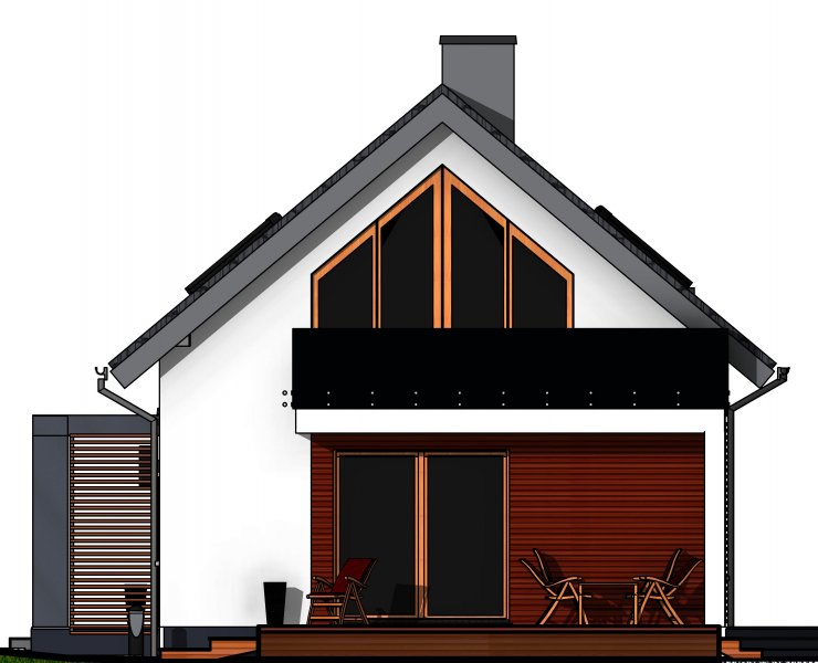 Dom posiada tylko jeden komin, poprzez zgrupowanie przewodów dymowych i spalinowych, co pozwala obniżyć koszty realizacji.