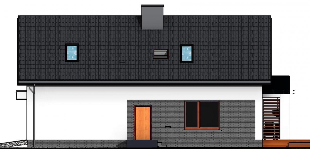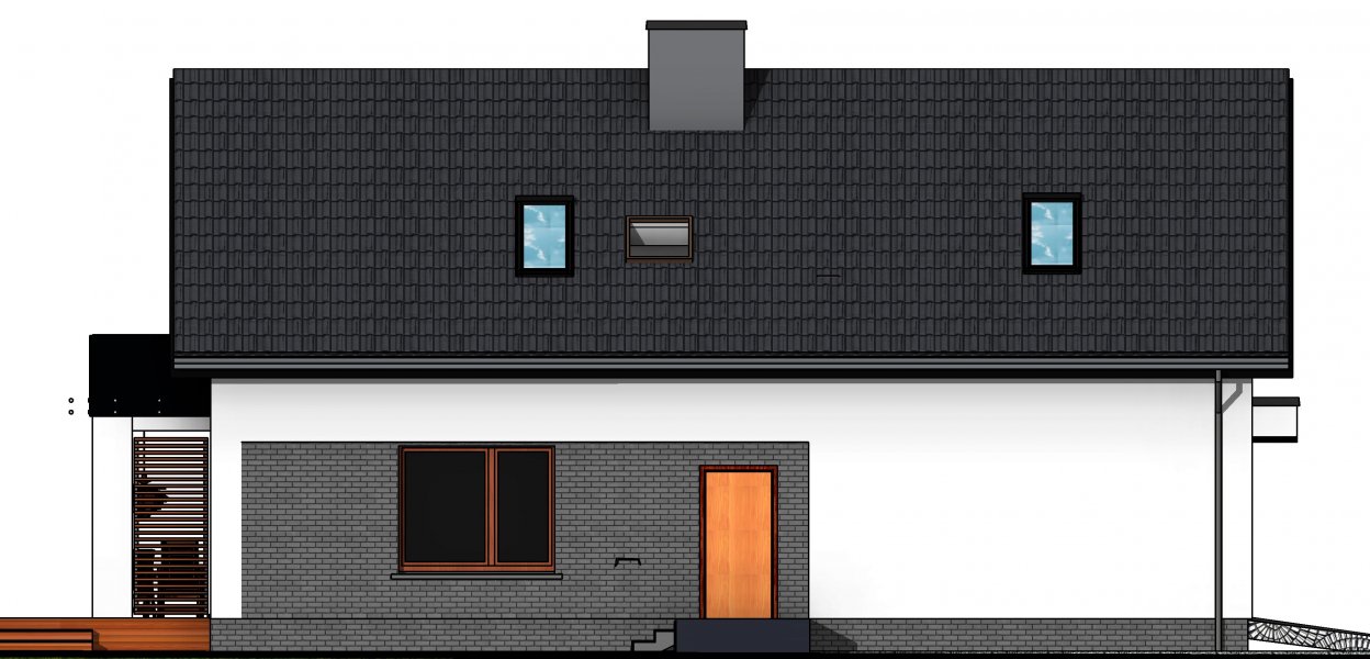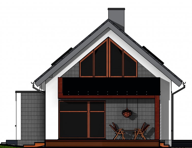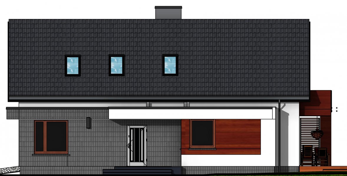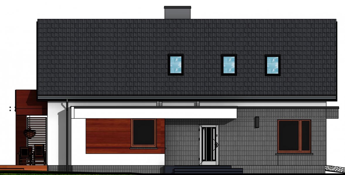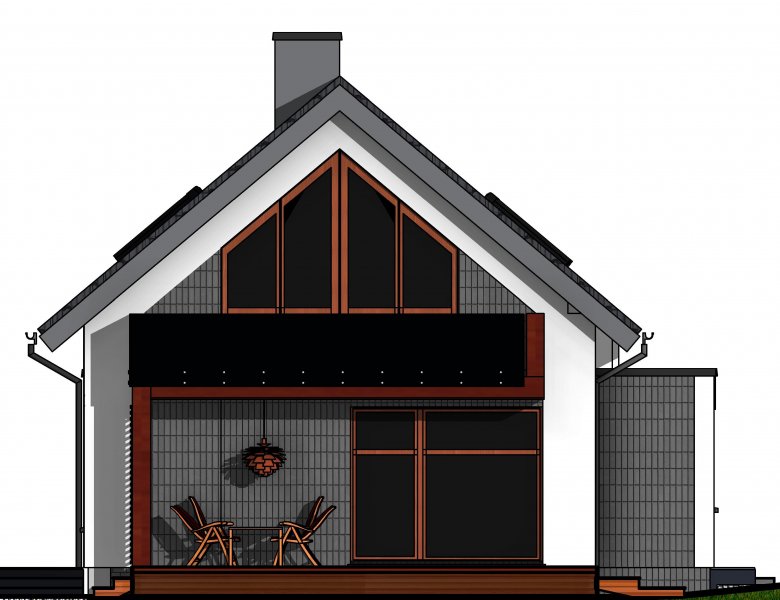 Połączenie sprawdzonych rozwiązań, prosty dwuspadowy dach sprawia, że budynek jest stosunkowo niedrogi i nietrudny w budowie. Zwarta forma obiektu będzie miała także korzystny wpływ skuteczność jego ogrzewania.