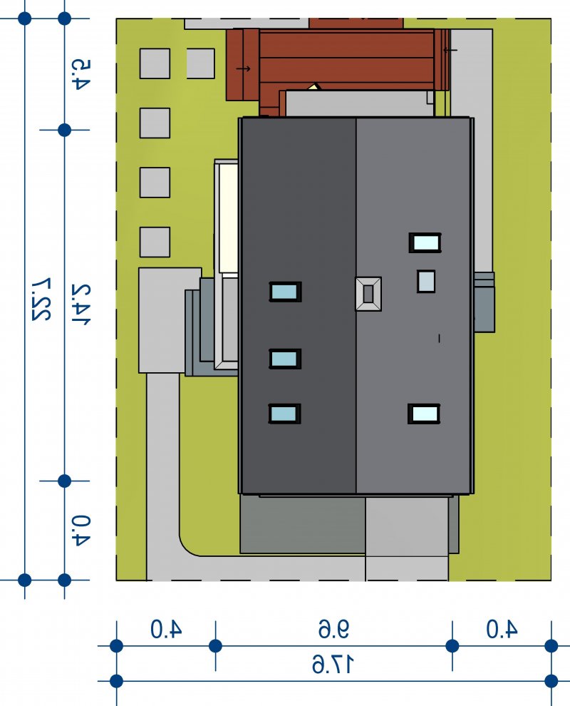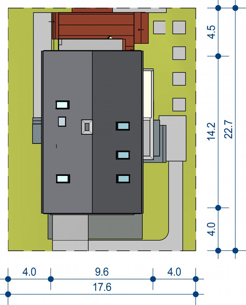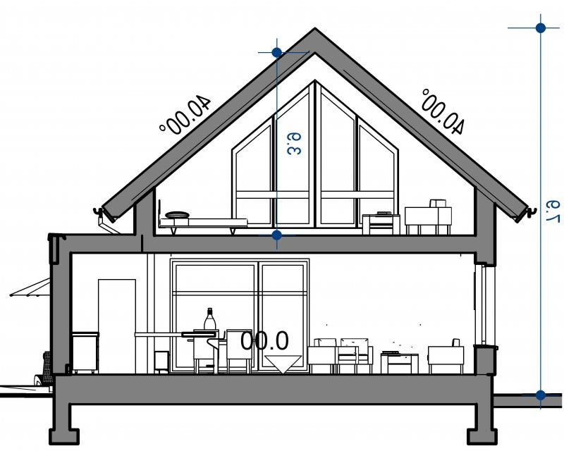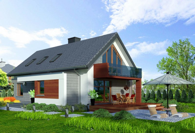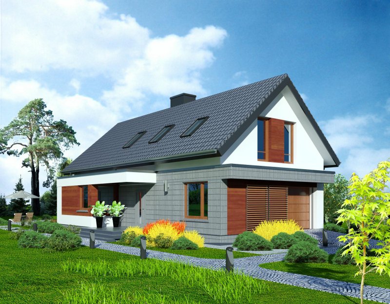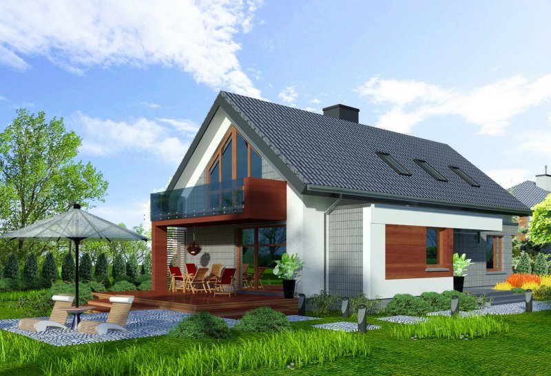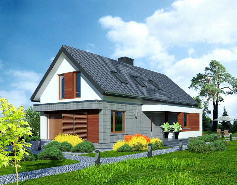 Połączenie sprawdzonych rozwiązań, prosty dwuspadowy dach sprawia, że budynek jest stosunkowo niedrogi i nietrudny w budowie. Zwarta forma obiektu będzie miała także korzystny wpływ skuteczność jego ogrzewania.
