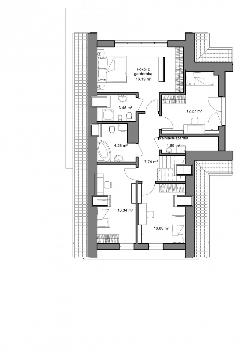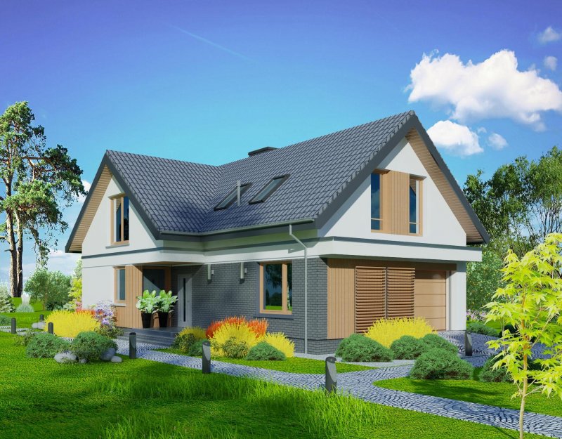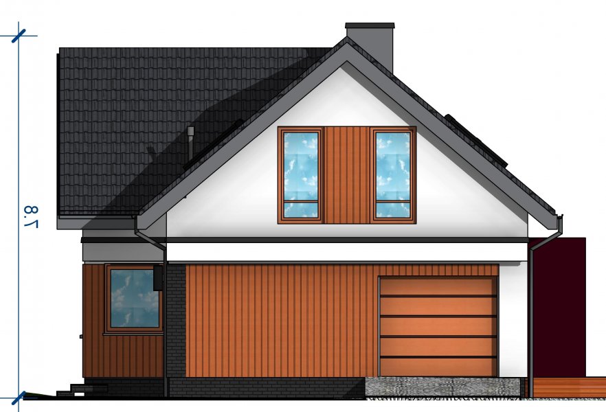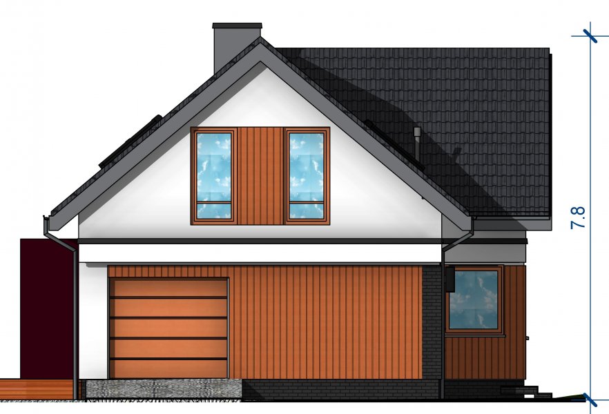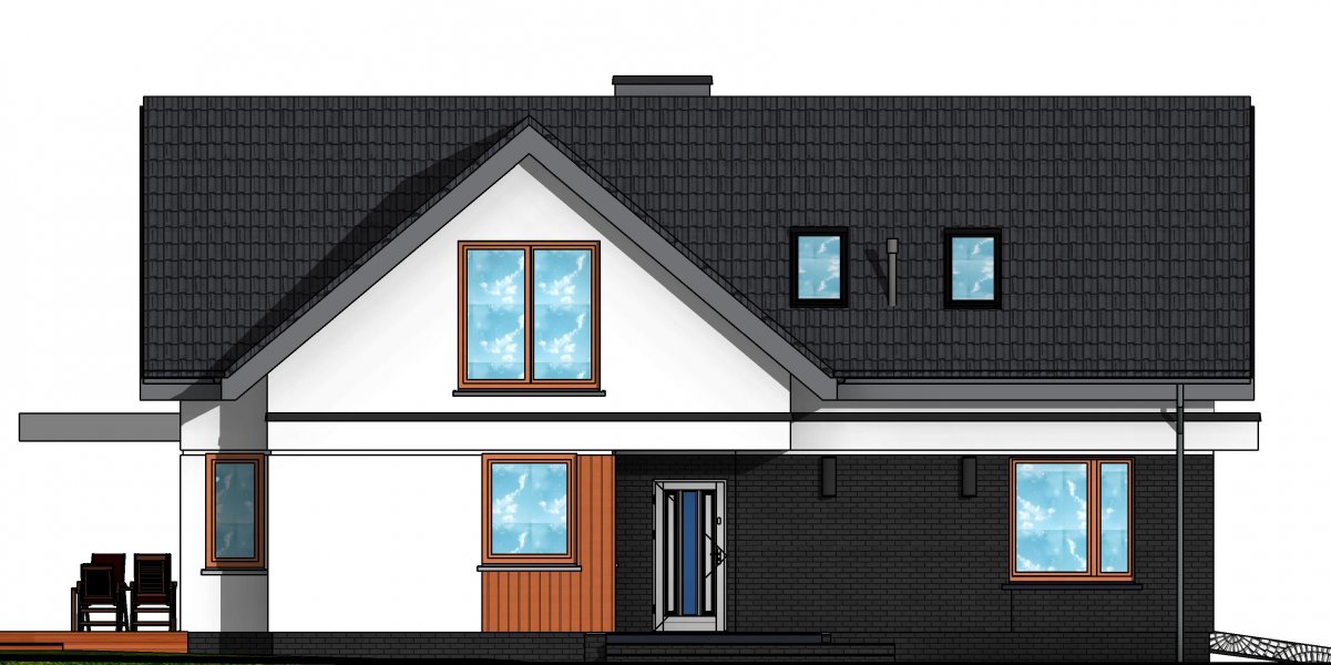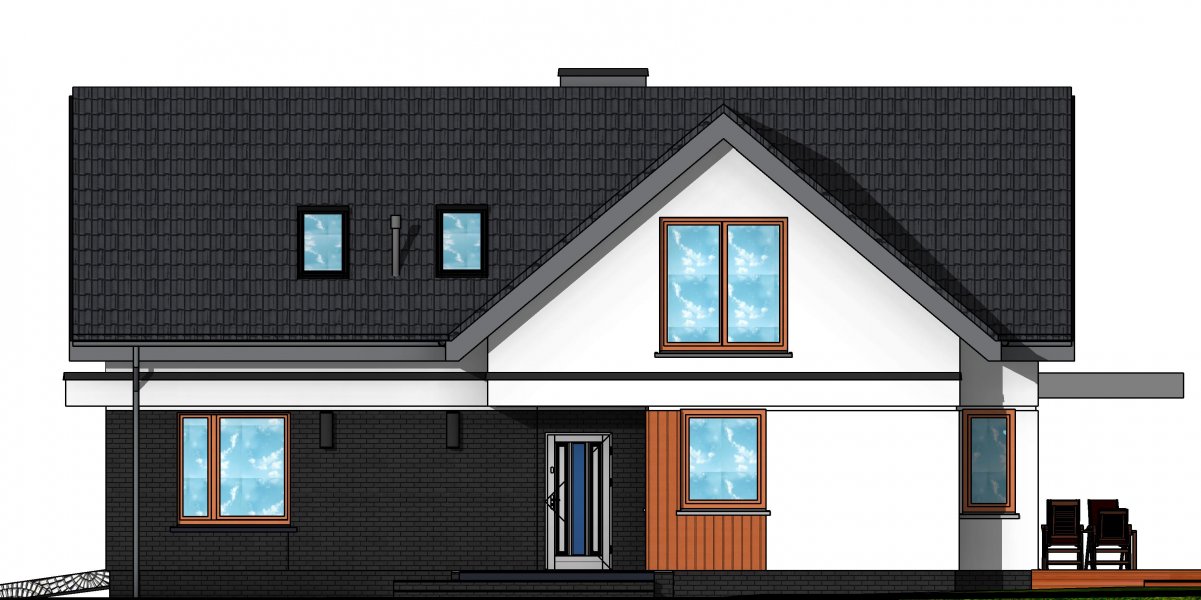 Wygodny, dokładnie przemyślany 6-cio pokojowy dom z poddaszem użytkowym. Szerokość domu wynosi 9,6m, więc nadaje się na wąską działkę.