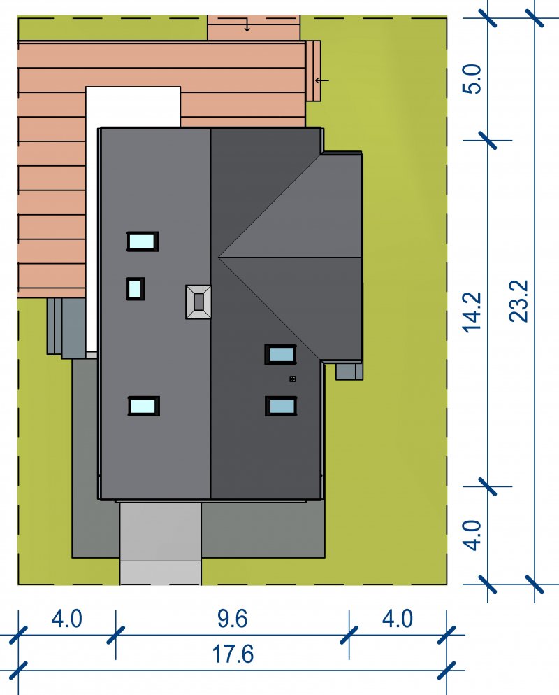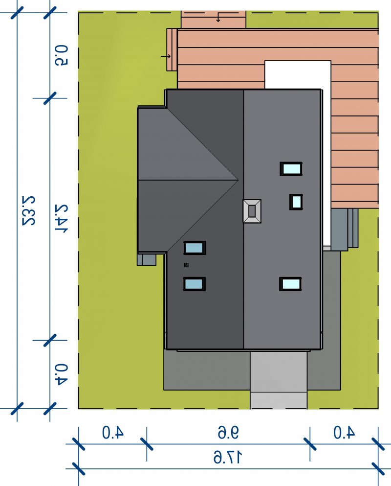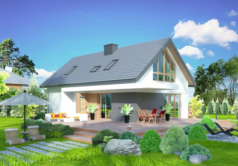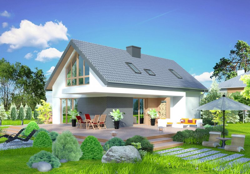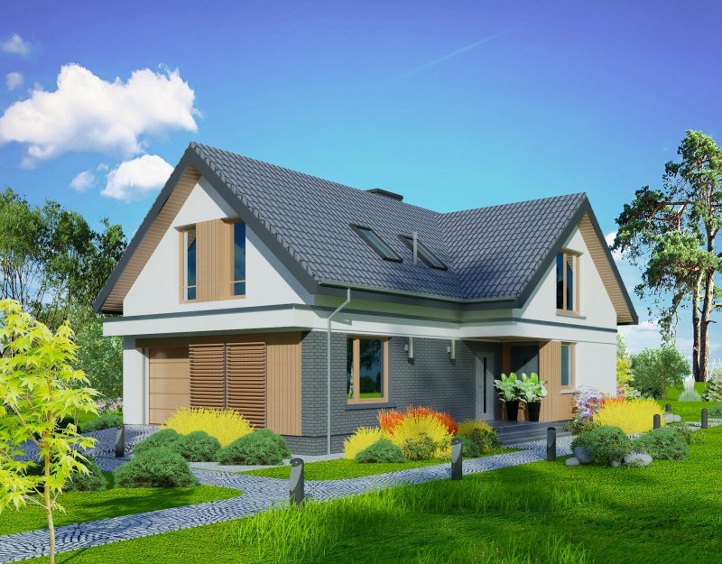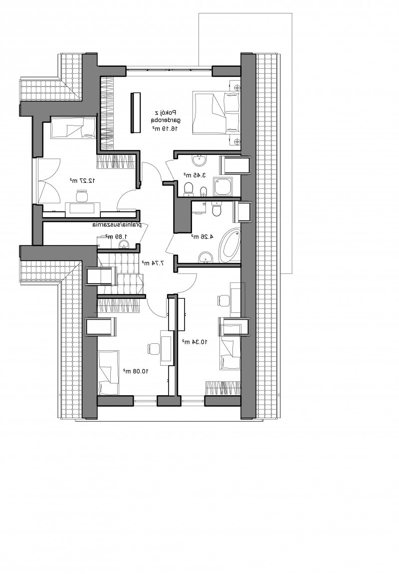 Wygodny, dokładnie przemyślany 6-cio pokojowy dom z poddaszem użytkowym. Szerokość domu wynosi 9,6m, więc nadaje się na wąską działkę.