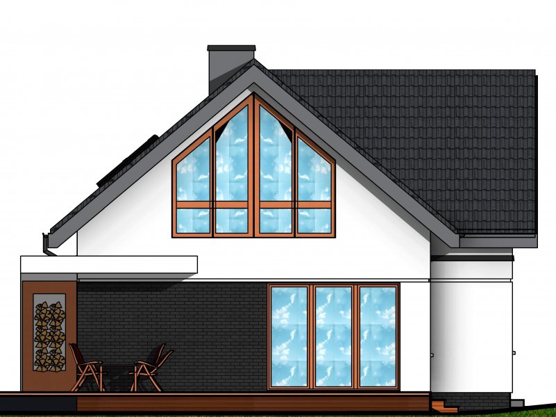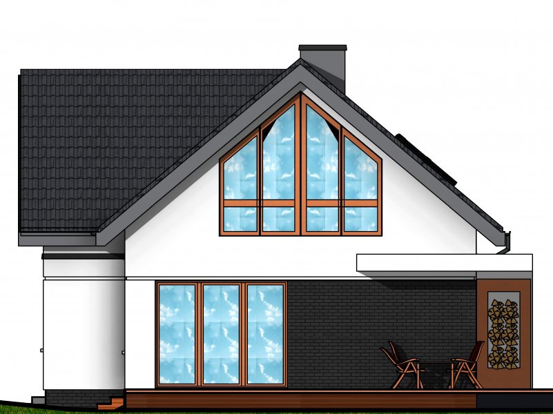Dom posiada tylko jeden komin, poprzez zgrupowanie przewodów dymowych i spalinowych, co pozwala obniżyć koszty realizacji.