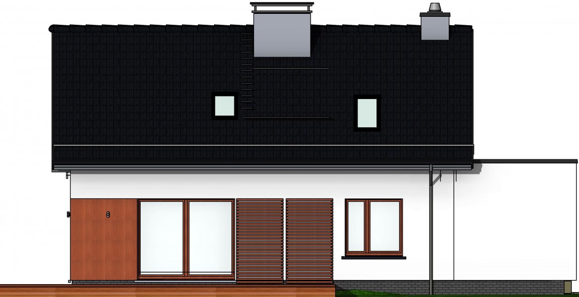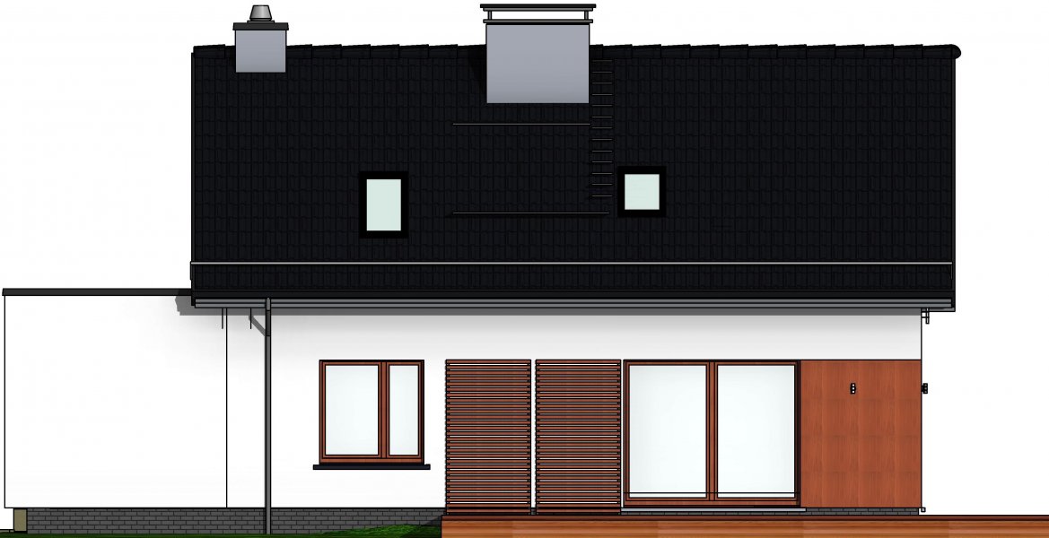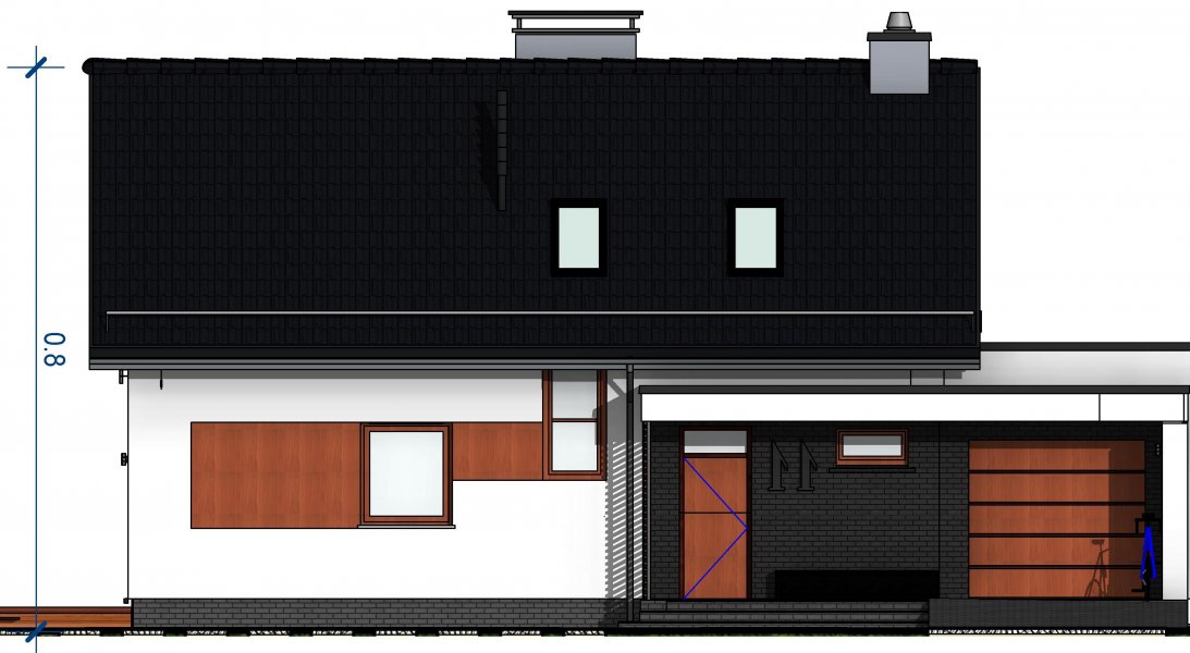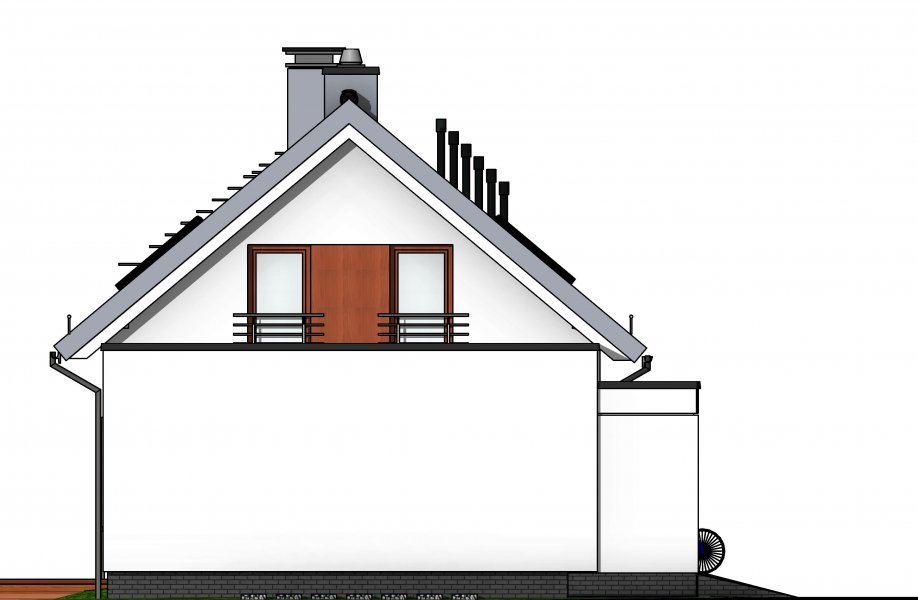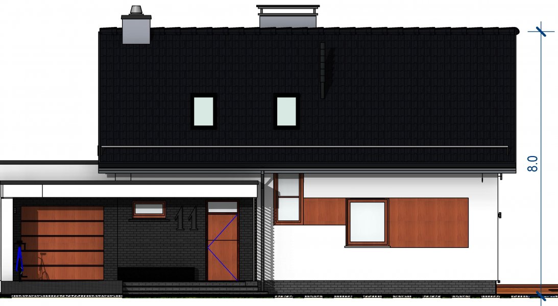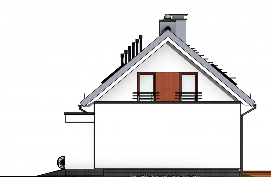 Wygodny, 5-pokojowy dom z poddaszem użytkowym. Na parterze znajduje się przestronny salon połączony z kuchnią oraz 11-metrowy pokój. Oprócz tego zaprojektowane jest także pomieszczenie przeznaczone na kotłownię oraz pralnię i suszarnię, przez które jest przejście do jednostanowiskowego garażu.