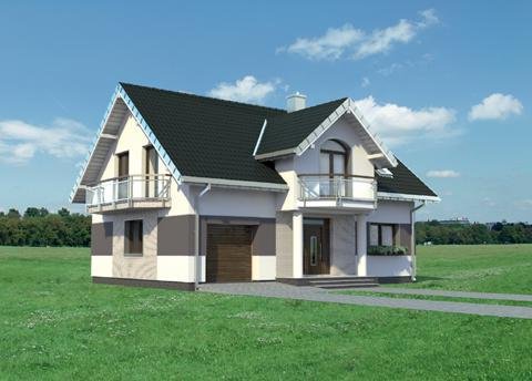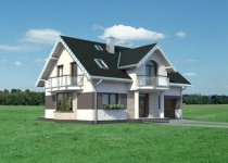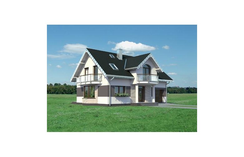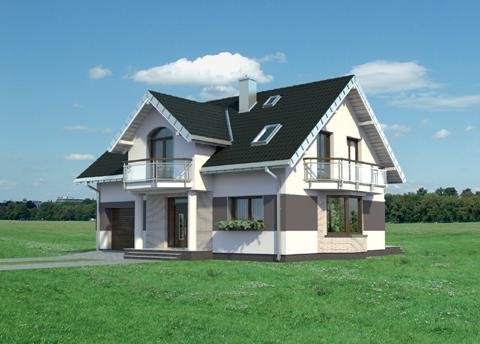 Średniej wielkości projekty domów z użytkowym poddaszem, o wspólnym rdzeniu nazwy - Dymsza, charakteryzuje zwarta bryła i jeden dach dla części mieszkalnej i garażowej. Energooszczędny prostopadłościan urozmaica efektowna lukarna od frontu, wsparta na słupach oraz balkony. Projekty różni wielkość pomieszczeń, kształt dachu i wariantowanie fragmentów planu. We wszystkich wersjach parter podzielono konstrukcyjnie i funkcjonalnie na mieszkalną strefę dzienną oraz na część gospodarczą. Otwarta kuchnia łączy się z salonem przez jadalnię umieszczoną w ryzalicie. Przestrzeń pod schodami wykorzystana została na pomieszczenie gospodarcze. Projekt domu Dymsza jest mniejszym w rodzinie. Garaż ma jedno miejsce postojowe, dlatego, inaczej niż w projekcie domu Dymsza Polo G2, główna sypialnia nie tworzy nad nim zespołu z własnym węzłem sanitarnym. W zamian zajmuje reprezentacyjną lokalizację we frontowym pomieszczeniu z lukarną nad podcieniem wejściowym. Wszystkie cztery pokoje poddasza mają zbliżoną wielkość, a przedpokój foremny kształt. Strefę prywatną, z dużą łazienką otwartą na balkon, wyposażono także w praktycznie położoną pralnię.