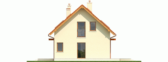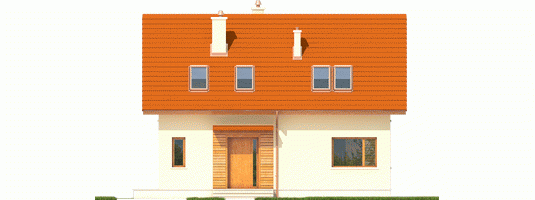 Dom zaprojektowany w technologii murowej ze stropem gęstożebrowym. Schody wewnętrzne drewniane. Dach o konstrukcji drewnianej pokryty dachówką płaską lub inną o podobnych parametrach. Elewacje wykończono tynkiem mineralnym i okładziną drewnianą. Cokoły kamienne lub wykończone tynkiem. Stolarka okienna drewniana lub PCV.