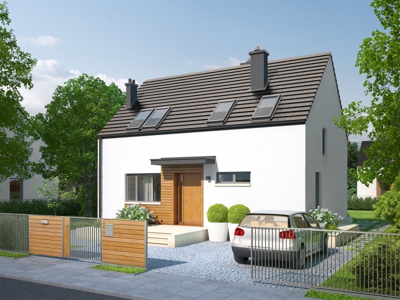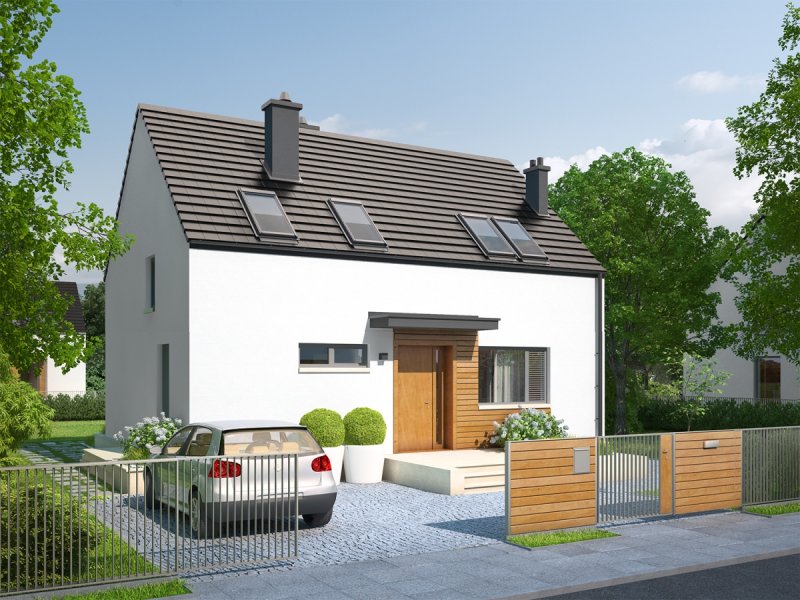 E1 II ECONOMIC (wersja A) to nowoczesny, energooszczędny dom, w którym harmonia czystych połączeń spotyka się z urokiem dyskretnej elegancji. W jego wnętrzu zaplanowano przejrzysty układ funkcjonalny – na parterze tętni życie rodzinne, na poddaszu domownicy odpoczywają, korzystając z wygodnych, doskonale doświetlonych sypialni. Do dyspozycji jest również zaciszny gabinet, który w razie potrzeby, spełnia się jako dodatkowy pokój dla gości.