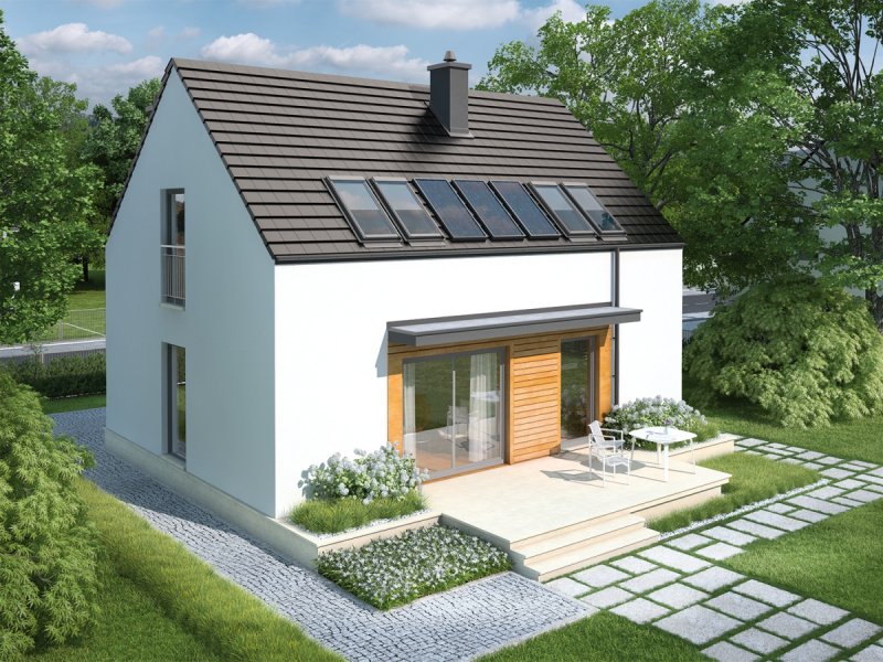 - E1 (wersja A) Multi-Comfort – dom w standardzie Multi-Comfort z rozwiązaniami technologiczno-materiałowymi Grupy Saint Gobain