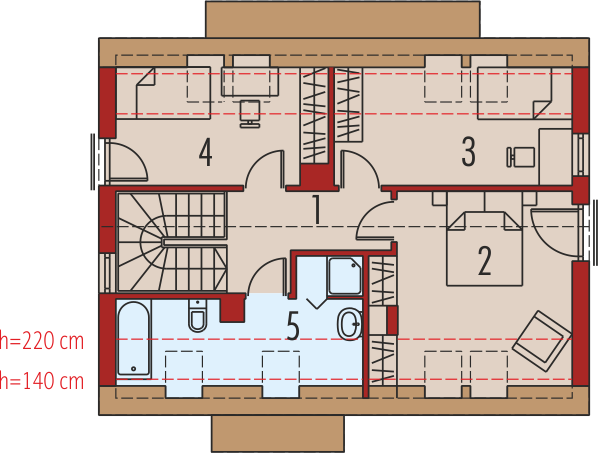 - Dach o konstrukcji drewnianej pokryty dachówką płaską lub inną o podobnych parametrach