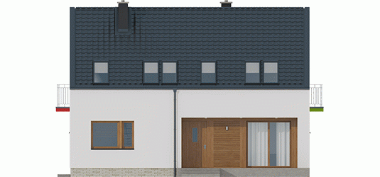 - E11 III ECONOMIC – mniejsza powierzchnia użytkowa, inna kompozycja elewacji, dach z okapem