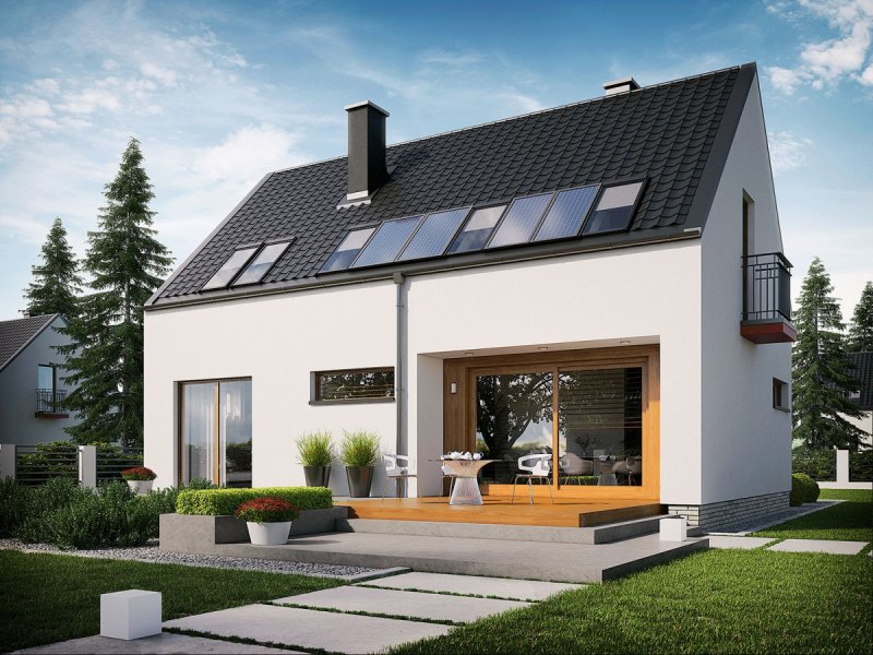 E11 ECONOMIC to czysta elegancja w najmodniejszym wydaniu. Kompaktowa, zgrabna bryła, skrywa w swym wnętrzu doskonale rozplanowany układ funkcjonalny. Życie rodzinne i towarzyskie koncentruje się wokół reprezentacyjnego salonu z bezpośrednim przejściem na taras. Kiedy domownicy potrzebują ciszy i spokoju przenoszą się w komfortową przestrzeń poddasza. W trosce o codzienną wygodę użytkowania zadbano także o praktyczne zestawy szaf wnękowych i schowków.
