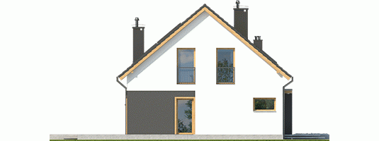 Elewacja: tynk cienkowarstwowy mineralny i okładzina drewniana