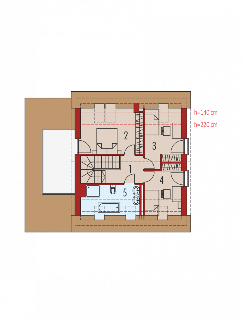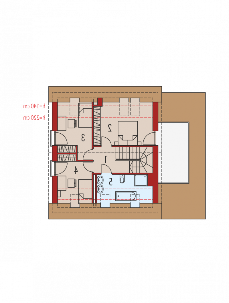 Dach: konstrukcja drewniana, ocieplenie wełna mineralna 30 cm, dachówka płaska lub inna o podobnych parametrach