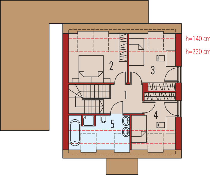 - Dach o konstrukcji drewnianej pokryto dachówką płaską lub inną o podobnych parametrach