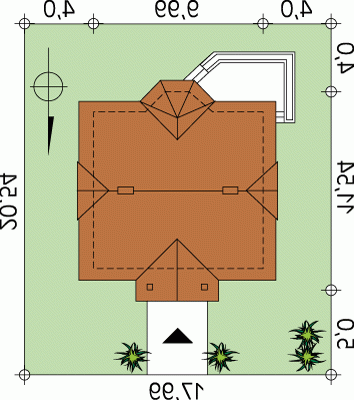 - Kąt nachylenia dachu 45.00°