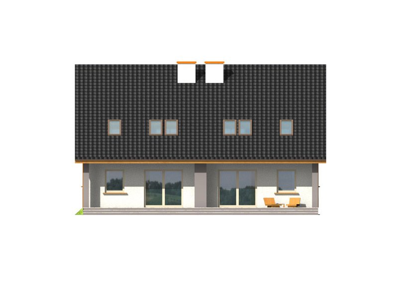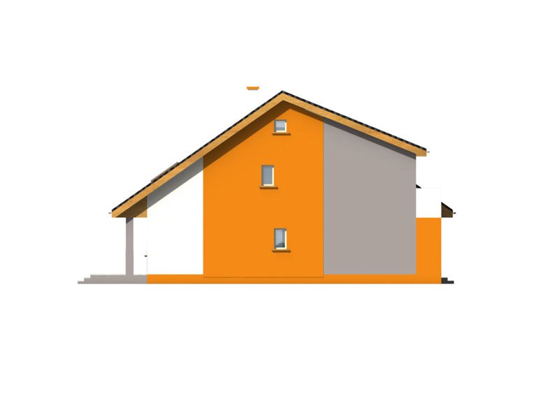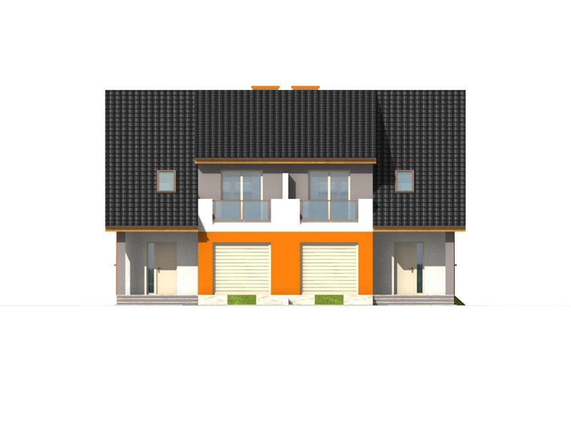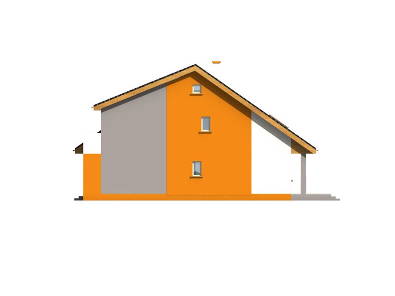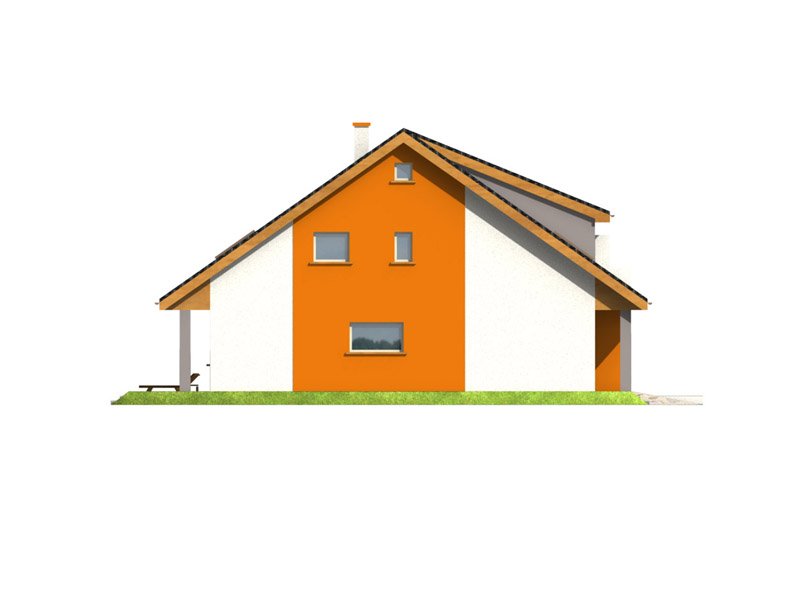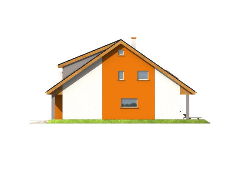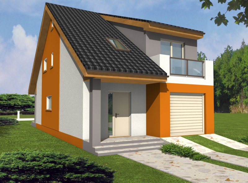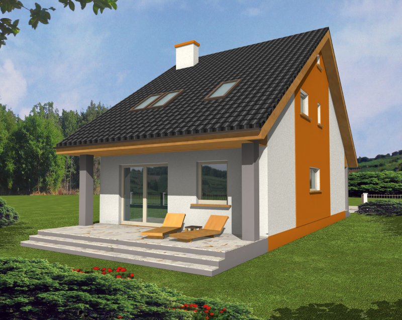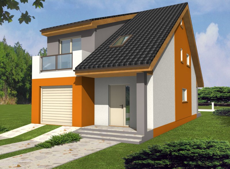 Dom ma bardzo atrakcyjny wygląd, wyróżniający formą i ciekawą kolorystyką. Przekrycie dwuspadowym dachem i czytelna konstrukcja sprawiają, że nie jest trudny w realizacji, co przekłada się na niższe koszty budowy.